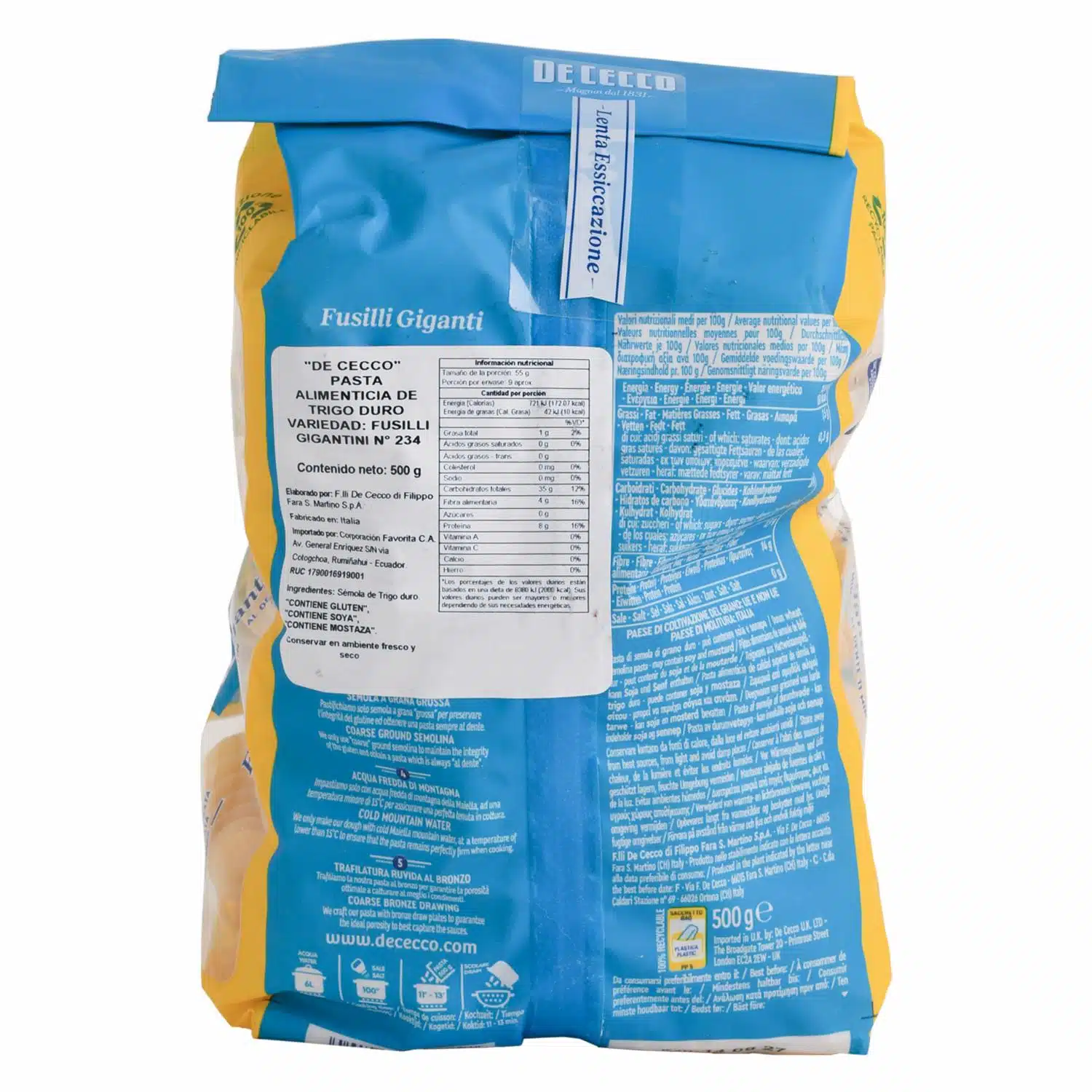 Pasta De Trigo Duro Fusili Giganti DE CECCO 500 G
