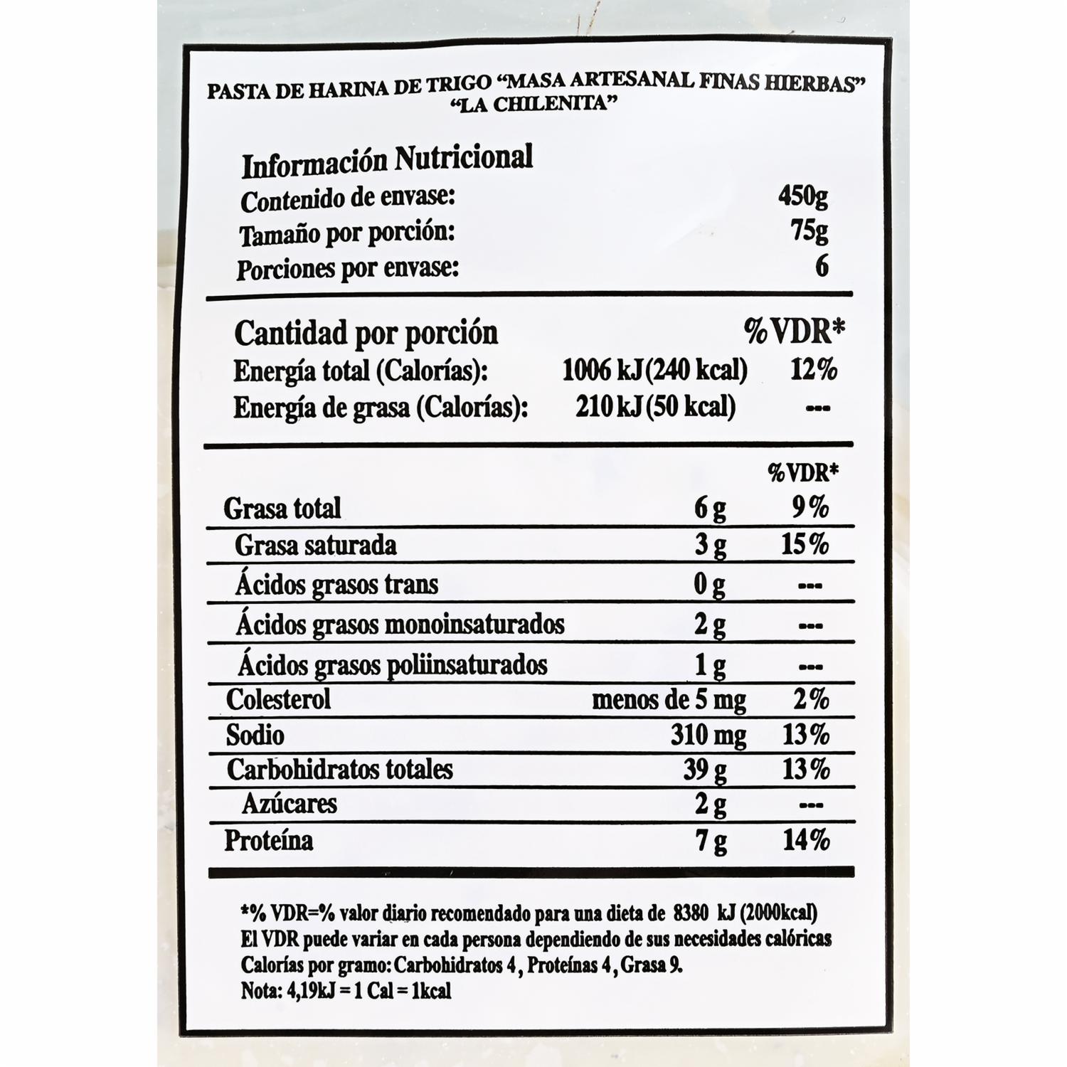 Pasta Fresca Finas Hierbas LA CHILENITA 450 G
