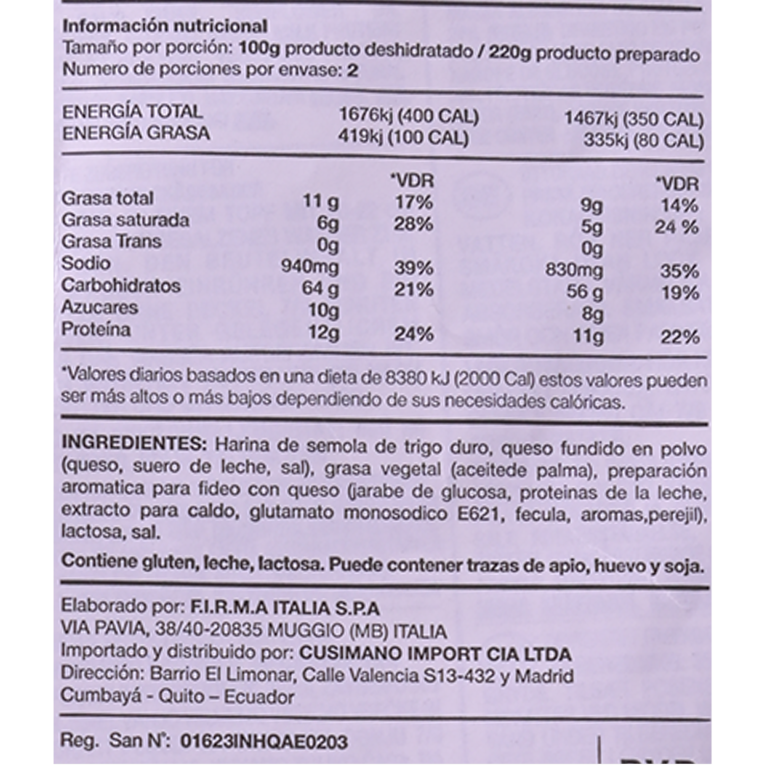 - El sobre incluye la pasta y la salsa
