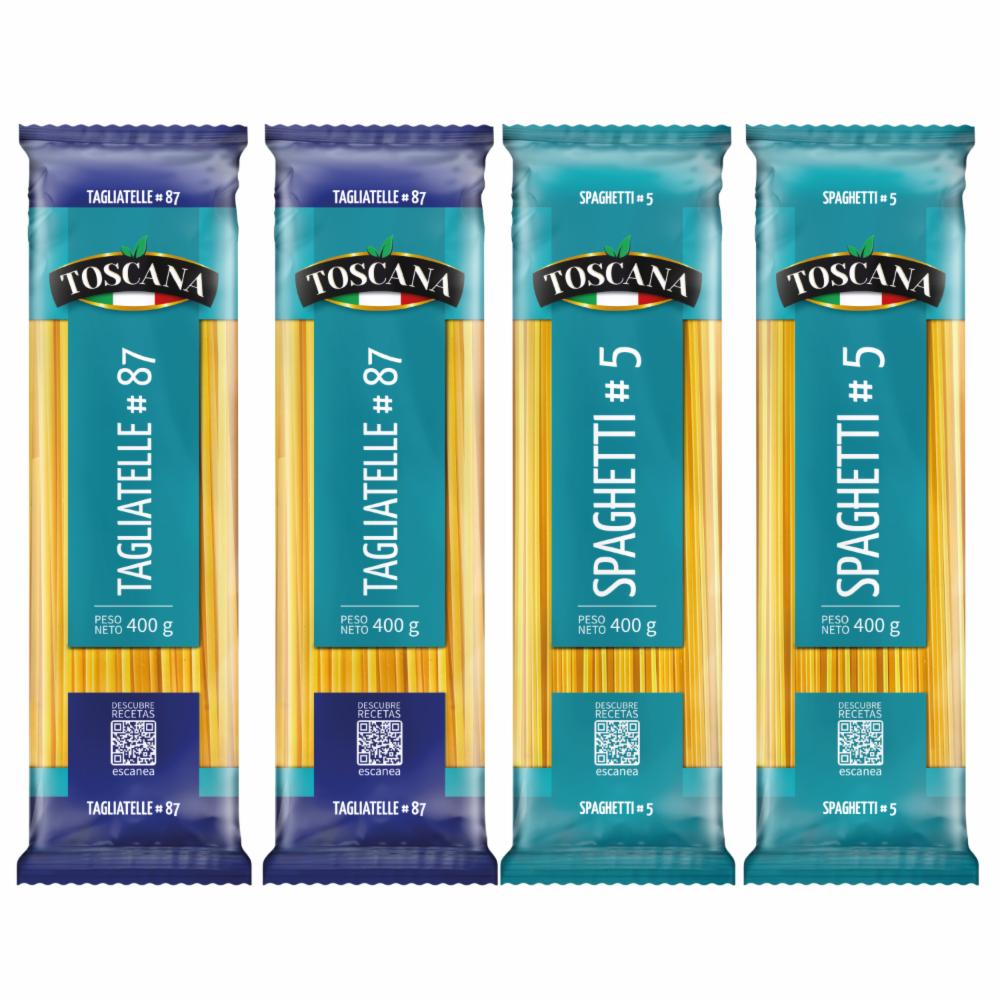 Fideo Pack 2Tagliatelle N°87 + 2 Spaghetti N°5 TOSCANA 4X400 G
