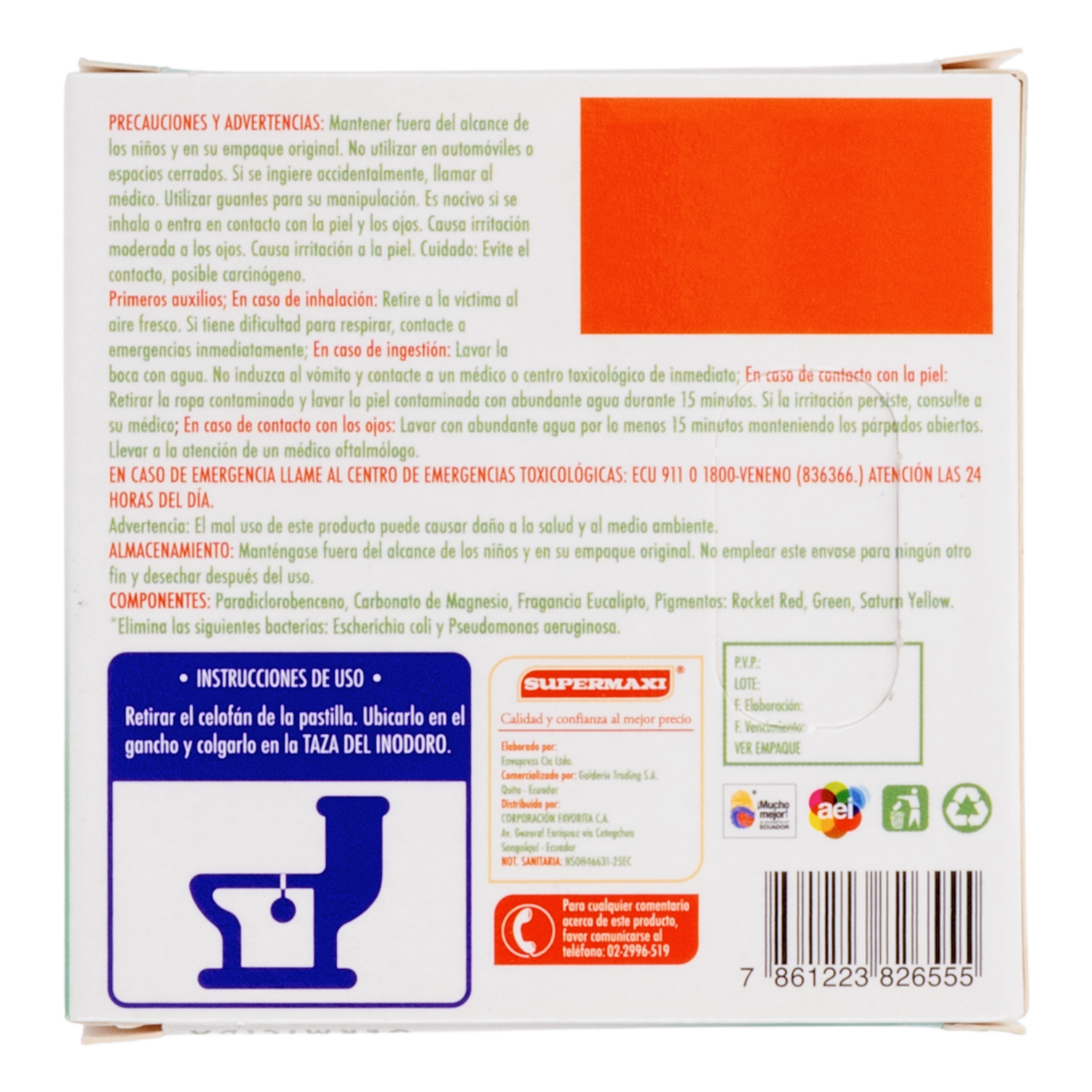 Pastilla Ambiental Para Baño Fragancia Eucalipto SUPERMAXI 95 G – SUPERMAXI. Disponible en nuestros locales. Precio y stock pueden variar según la tienda.