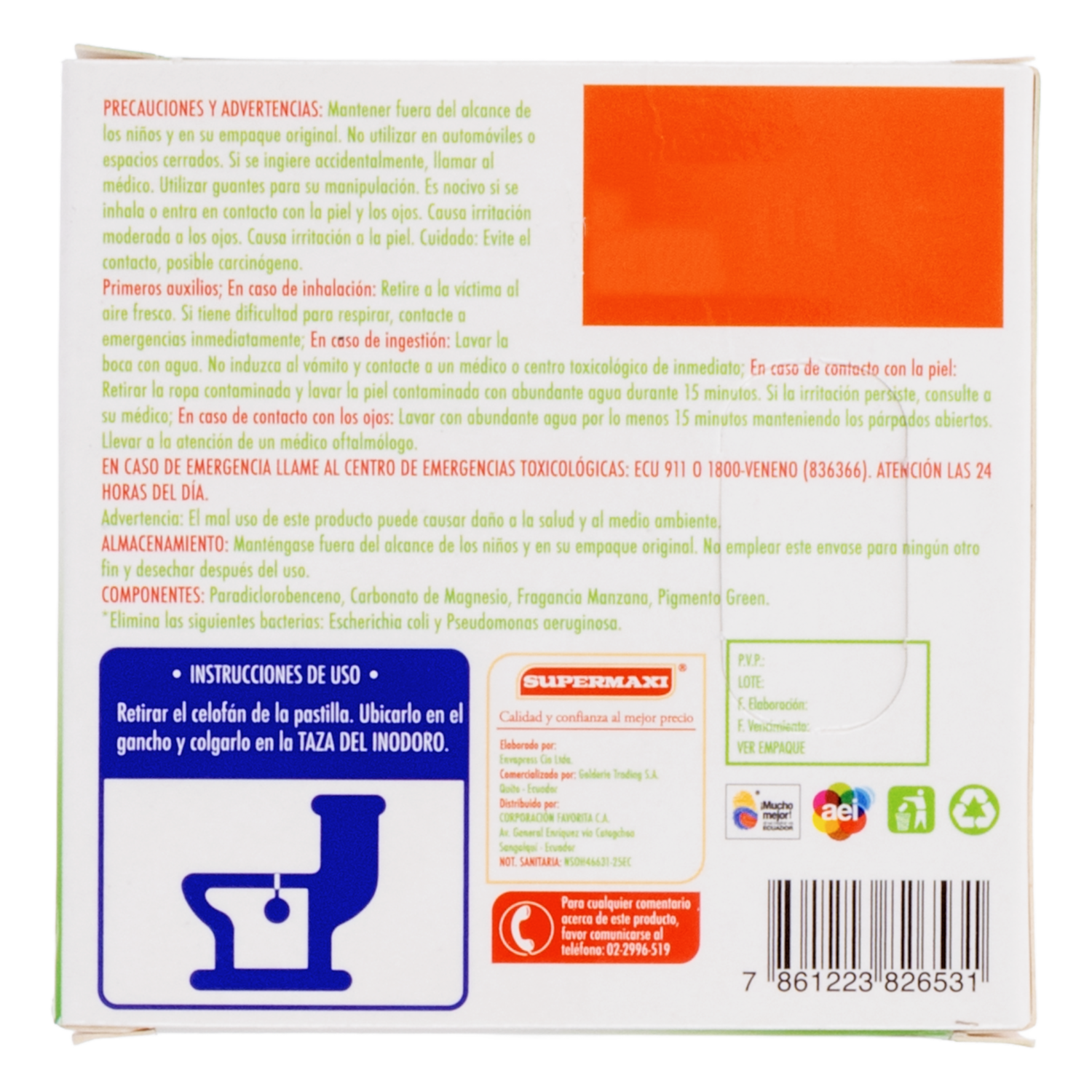 Pastilla Ambiental Para Baño Fragancia Manzana SUPERMAXI 95 G