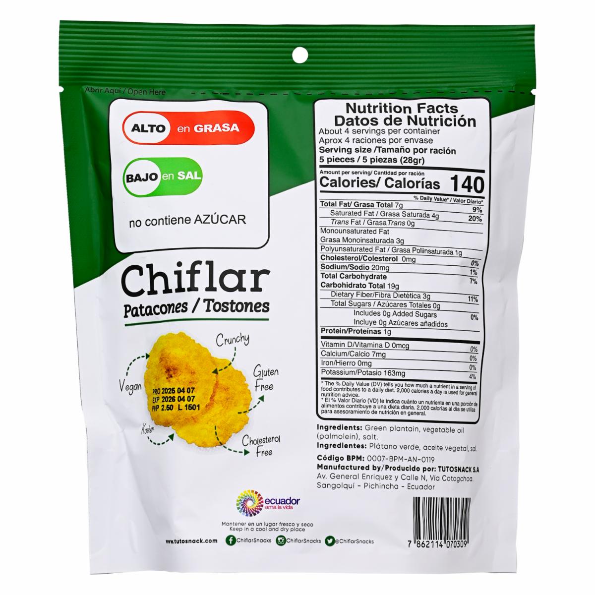 consultando preciosPatacón Tostones CHIFLAR 100 G – CHIFLAR. Disponible en nuestros locales. Precio y stock pueden variar según la tienda.