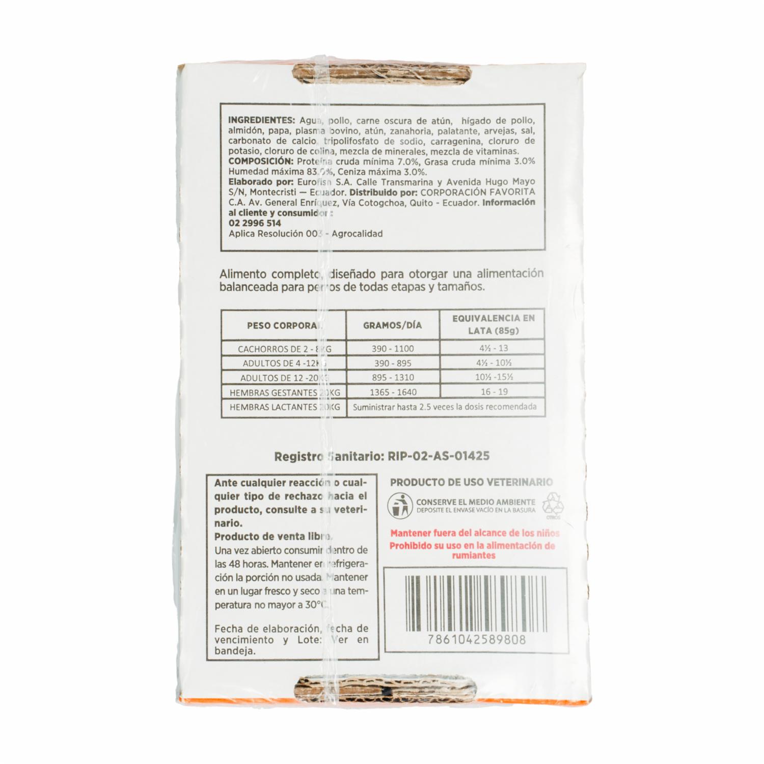 • Características: Sabor irresistible a pollo que encanta a los perros Comida húmeda de alta calidad, rica en proteínas Presentación práctica de 12 latas de 85g Ideal para perros de todas las razas y tamaños