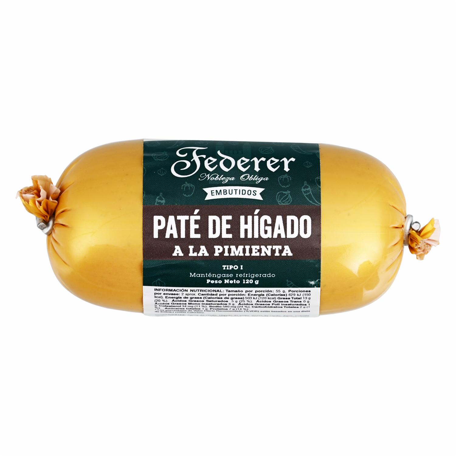 Pate Sabor A Pimienta FEDERER 120G – FEDERER. Disponible en nuestros locales. Precio y stock pueden variar según la tienda.