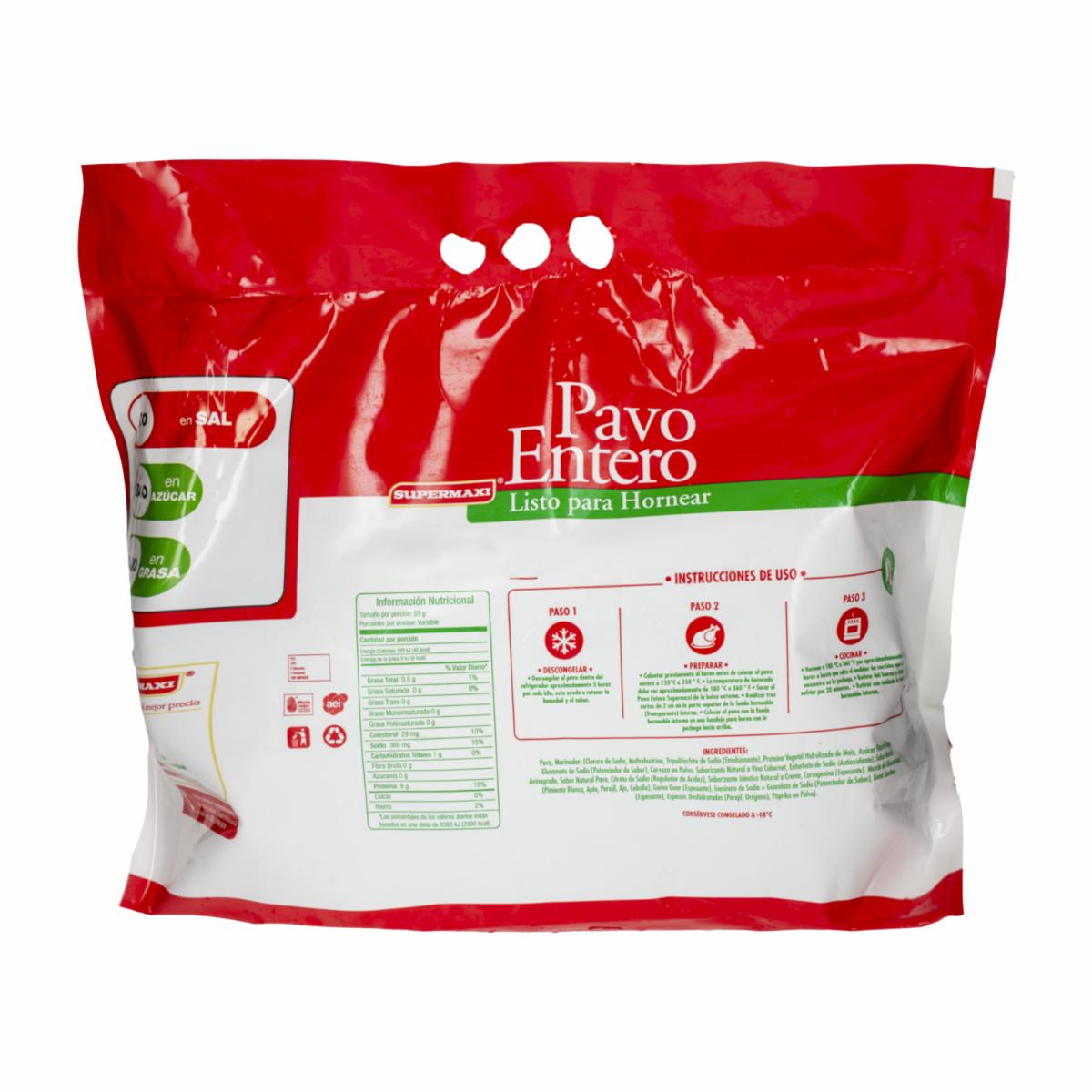 - Pavo Listo Para Hornear Supermaxi 6-8kg El Pavo Es Más Bajo En Calorías Y Grasa Que El Pollo, Lo Que Puede Ser Importante En Dietas De Adelgazamiento. Además, Aporta Un Poco Más De Proteínas, Lo Que La Hace Más Propicia Para Las Dietas Deportivas. Pavo Supermaxi Ha Sido Criado Con Los Mejores Cuidados Para Ofrecerte Una Carne Suave, Tierna Y Jugosa
