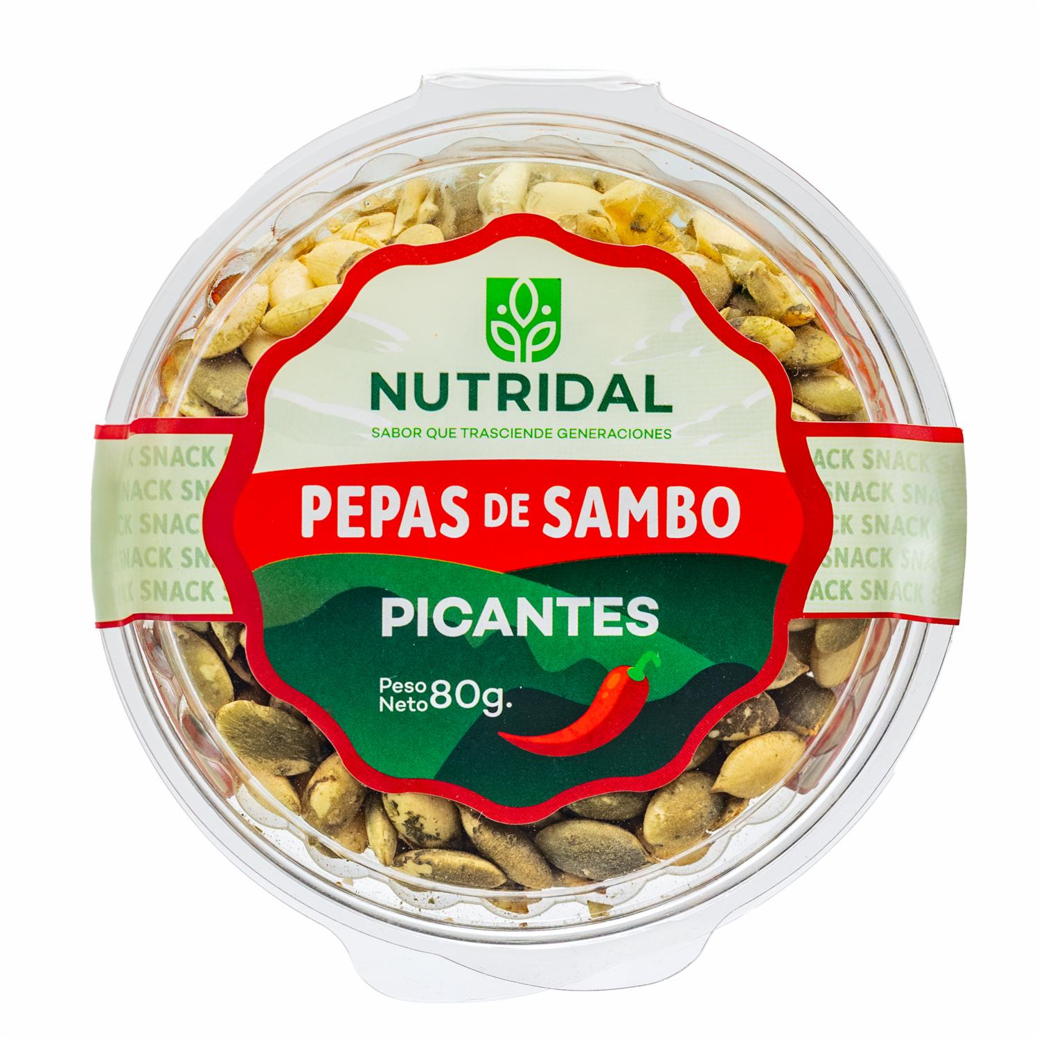 - Las Pepas de Sambo Nutridal, son un snack único, saludable y delicioso. Las semillas de sambo son tostadas únicamente con sus propias grasas naturales, lo que crea un snack crujiente que es alto en proteína y además te aporta: Omega-3, Omega-6, Omega-9, hierro, magnesio, zinc y fibra