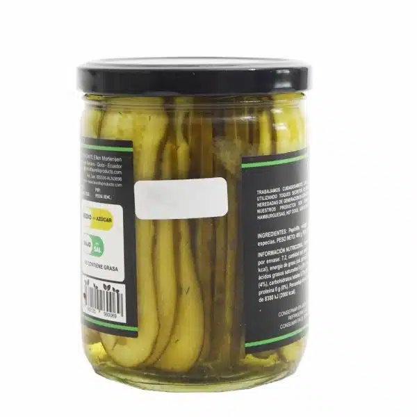 Pepinillos frescos cortados de forma ideal para sanduches y emparedados son ideales para bocadillos su vida útil es de 2 años en su empaque