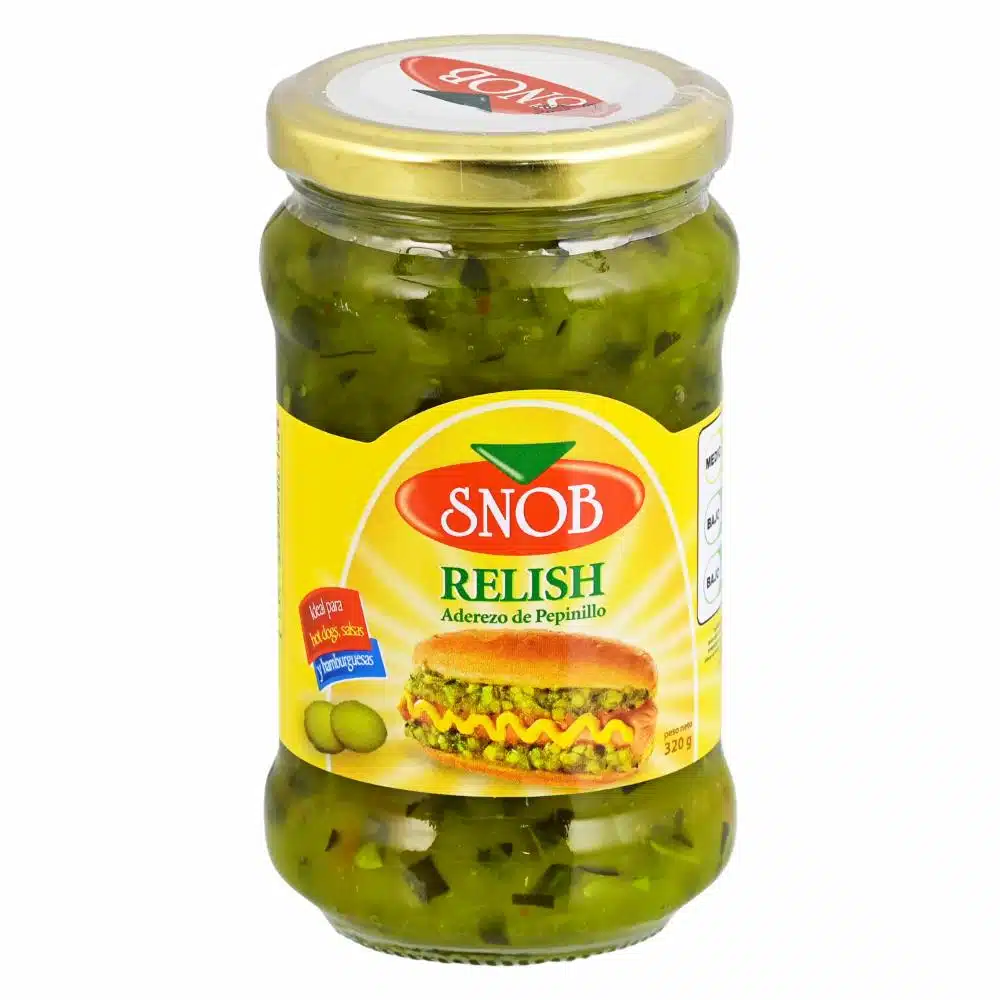 Pepinillos Relish SNOB 320 G – SNOB. Disponible en nuestros locales. Precio y stock pueden variar según la tienda.