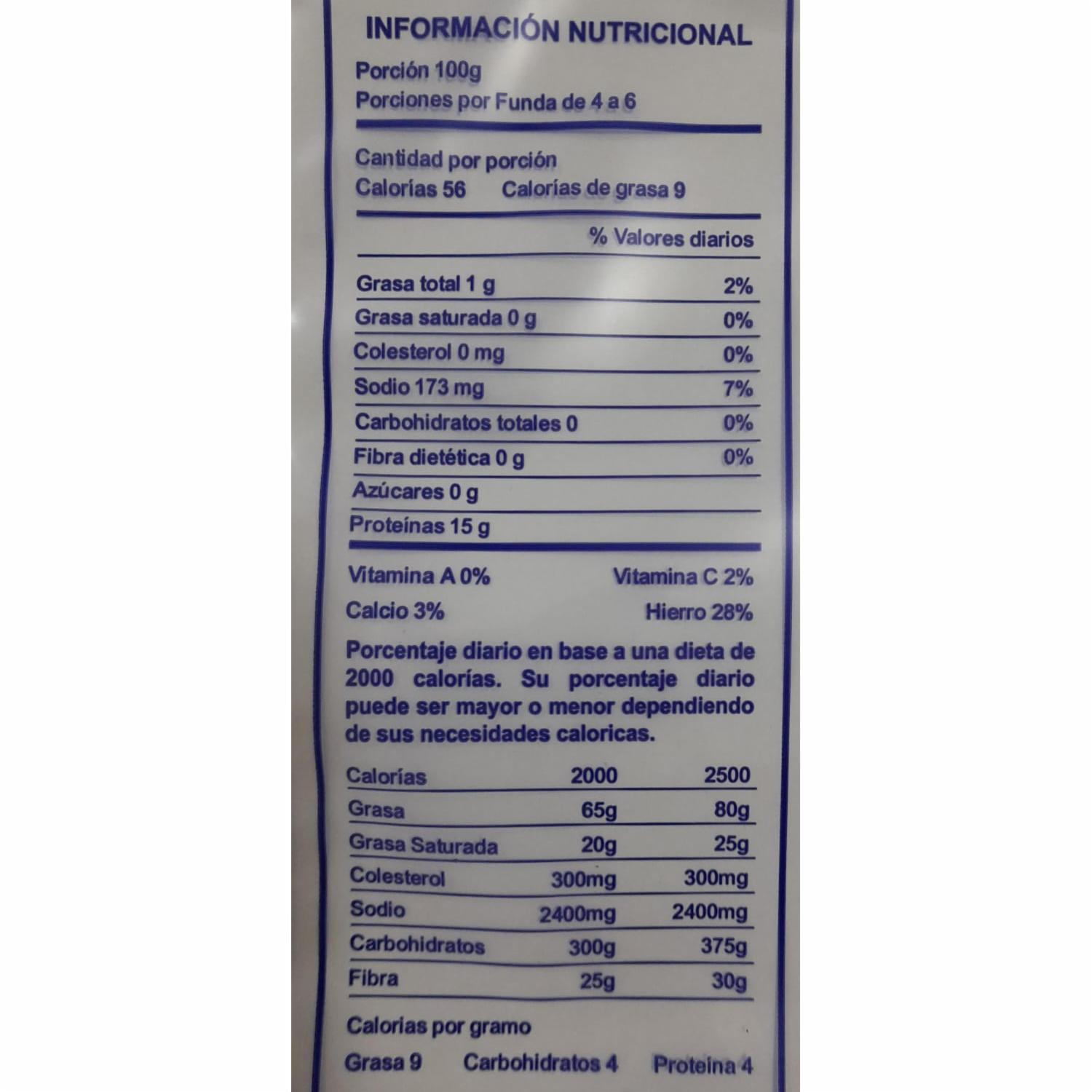 - Contiene todos los aminoácidos esenciales, vitaminas (A y D), minerales (yodo, zinc, selenio, fósforo) y ácidos grasos, principalmente Omega-3, destacando el DHA (docosaexaenoico) y EPA (eicosapentaenoico). Fortalece el sistema inmunológico. Mejora el crecimiento y desarrollo de los niños y niñas. Aporta proteínas de alto valor biológico y de fácil digestión. Producto natural y de facil preparación