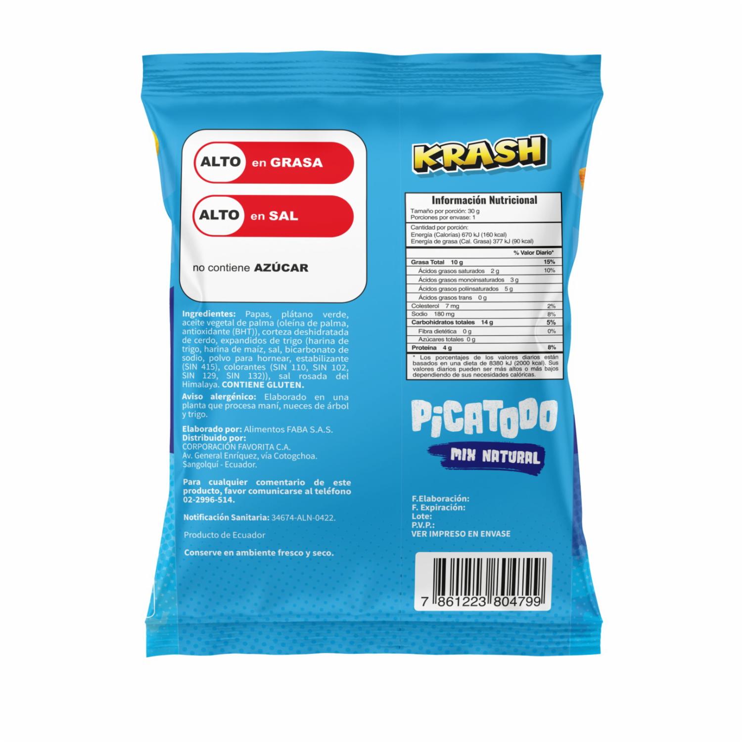 Picatodo Mix Natural De Chifles, Papas Fritas, Cueritos Y Bocaditos De Trigo KRASH 30 G