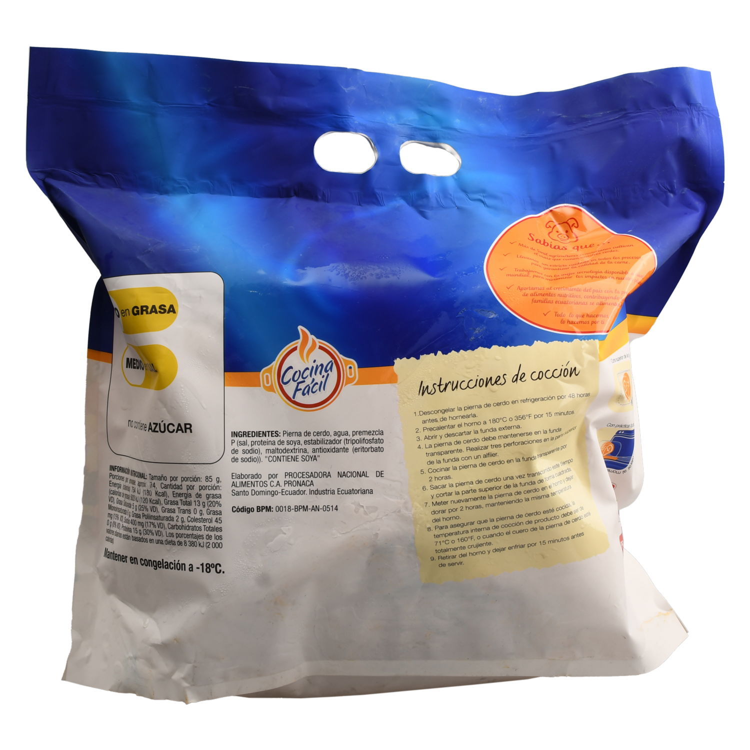 - - Producto elaborado a base de pierna de cerdo adobada con especias y condimentos.