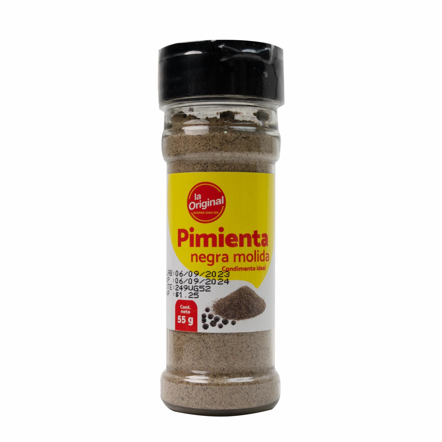 consultando preciosPimienta Negra Molida LA ORIGINAL Frasco – LA ORIGINAL. Disponible en nuestros locales. Precio y stock pueden variar según la tienda.