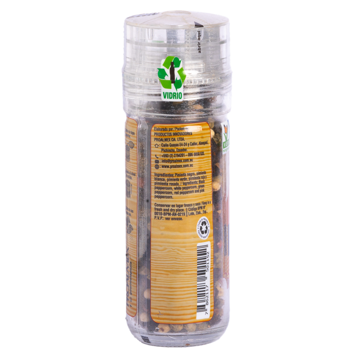 - Las 5 pimientas más deliciosas: negra, roja, verde, blanca y la más trendy rosada en un molinillo graduable, la combinación perfecta, les dará un sabor y aroma único a todas tus comidas