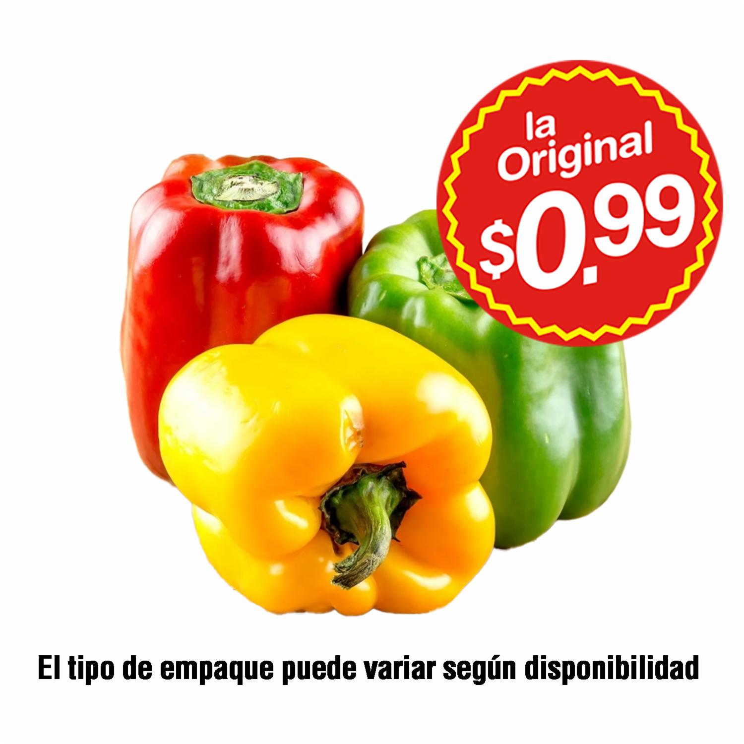 - Mezcla de pimientos frescos en variedad de colores: rojo, amarillo y verde. Con textura crujiente, piel brillante y un sabor dulce y equilibrado, este mix es ideal para dar color y frescura a ensaladas, salteados, asados o cualquier preparación. Producto seleccionado para ofrecer calidad y presentación atractiva. El producto se entrega en presentación de funda o malla, según disponibilidad