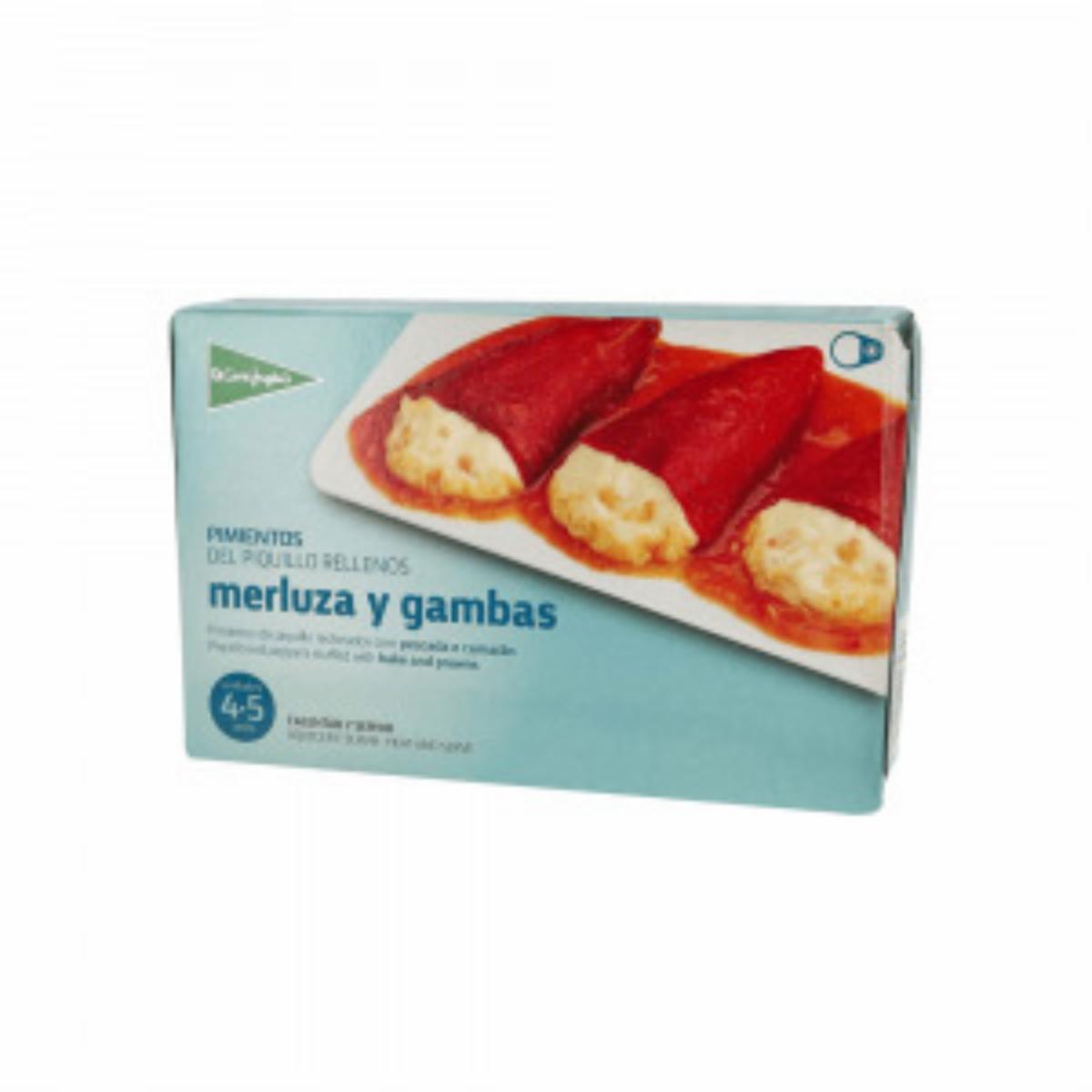 - Pimientos piquillo rellenos de merluza y gambas. - Producto disponible en El Corte Inglés. - No se especifican más propiedades del producto