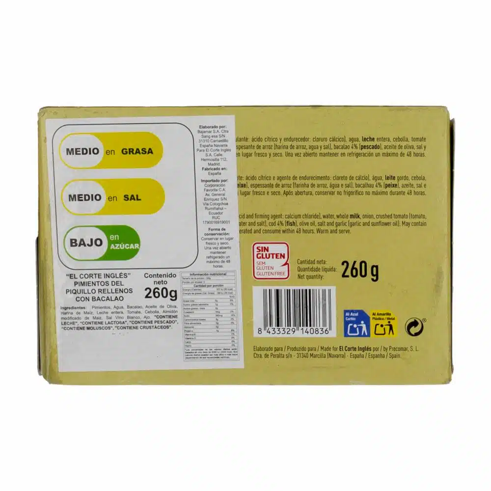 Pimientos Rellenos De Bacalao EL CORTE INGLÉS 260 G