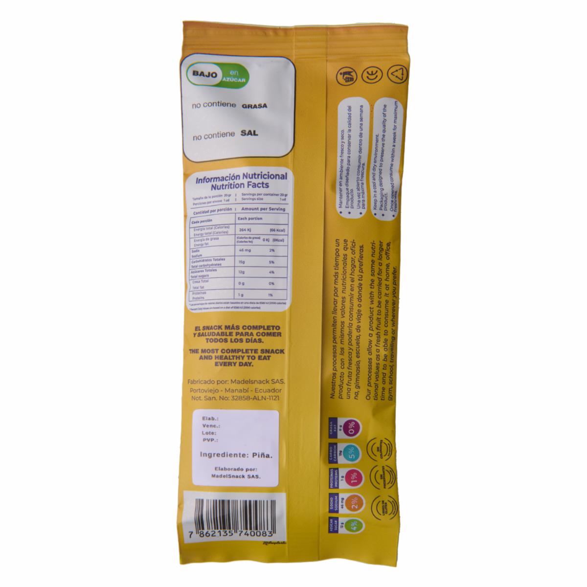 consultando preciosPiña Deshidratada MADELSNACK 20 G – MADELSNACK. Disponible en nuestros locales. Precio y stock pueden variar según la tienda.