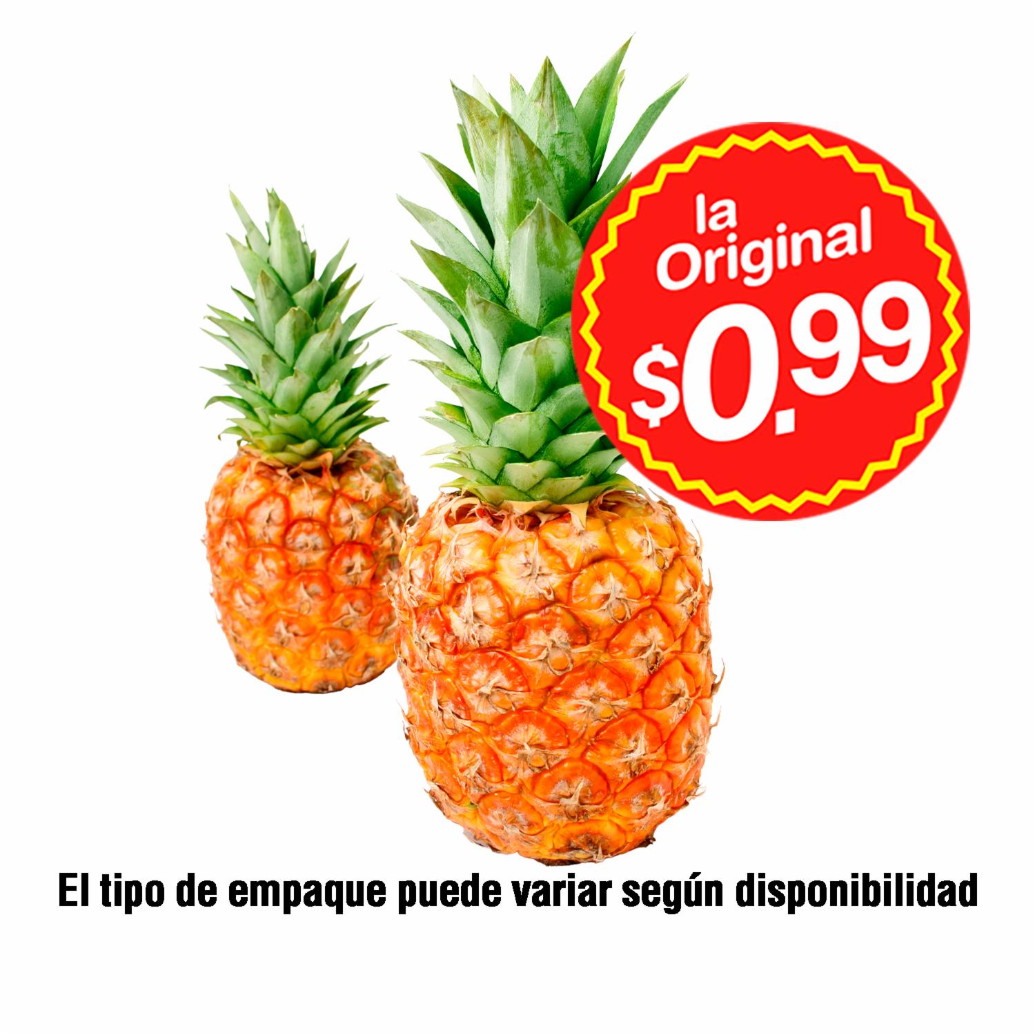 La piña contiene un 85% de agua, hidratos de carbono y fibra, y provee grandes beneficios nutricionales y de salud. El producto se entrega en presentación de funda o malla, según disponibilidad