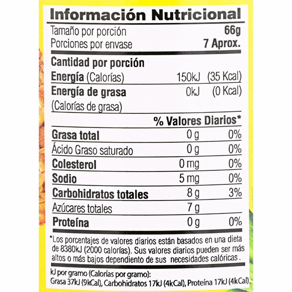 - Piñas en trozos en su jugo, sin azucares añadidos, fuente de vitamina C y fibra