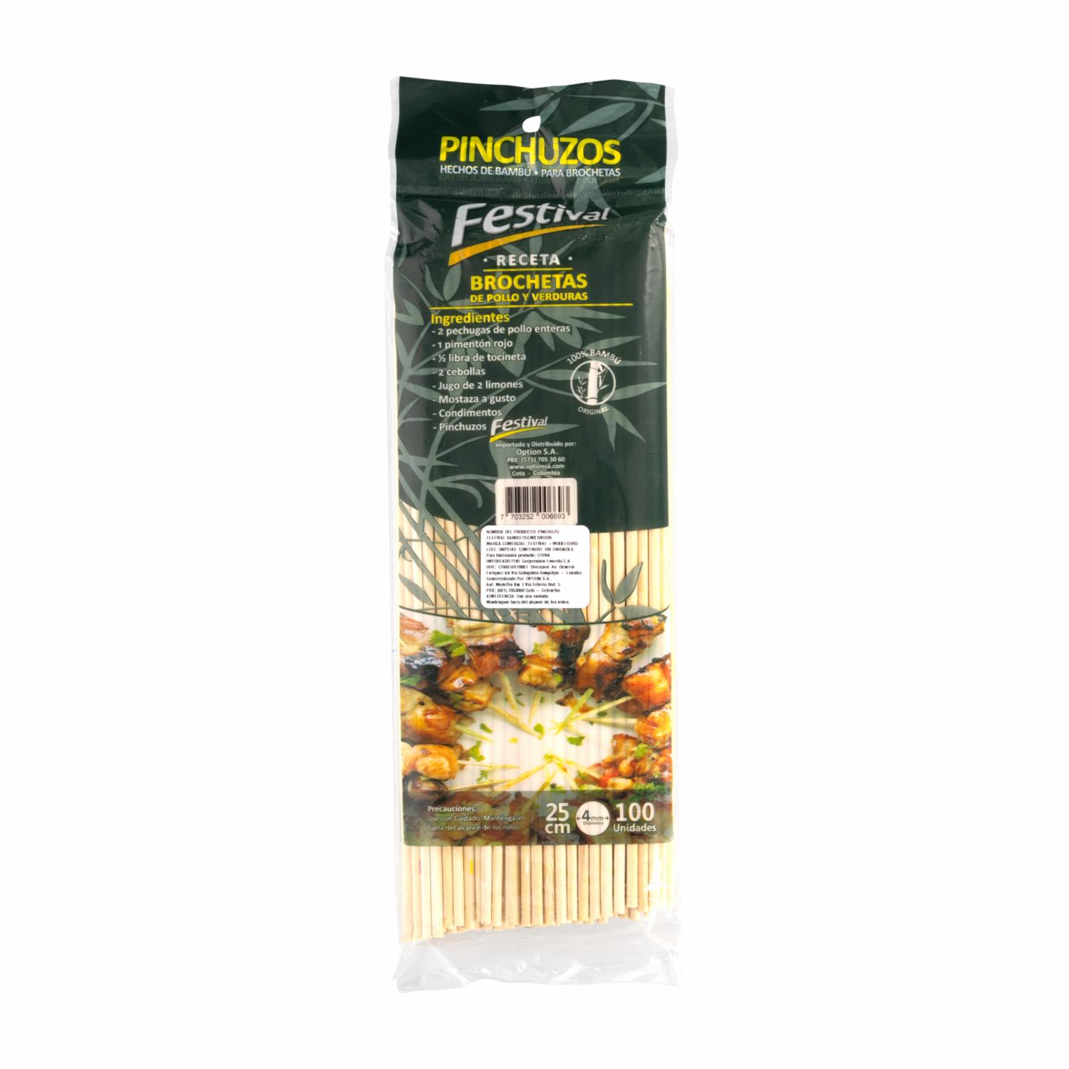 Pinchuzos De Bambú 25 Cm FESTIVAL X 100 Uds