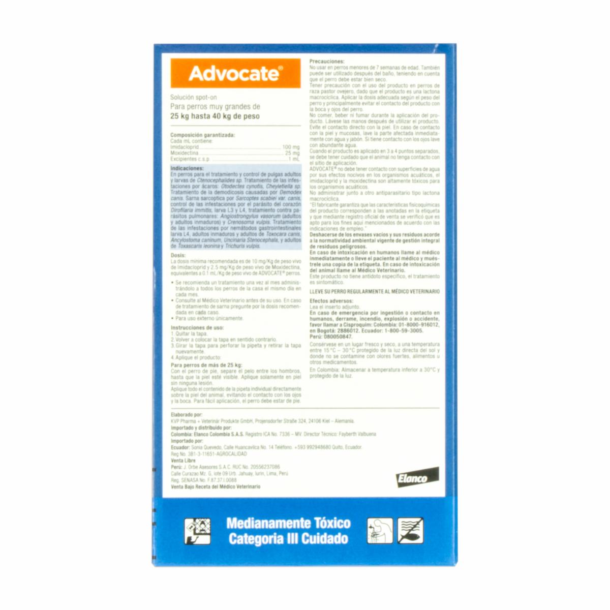 Pipeta Anti Parásitos Para Perro Grandes De 25 a 40 KG ELANCO 4 Ml