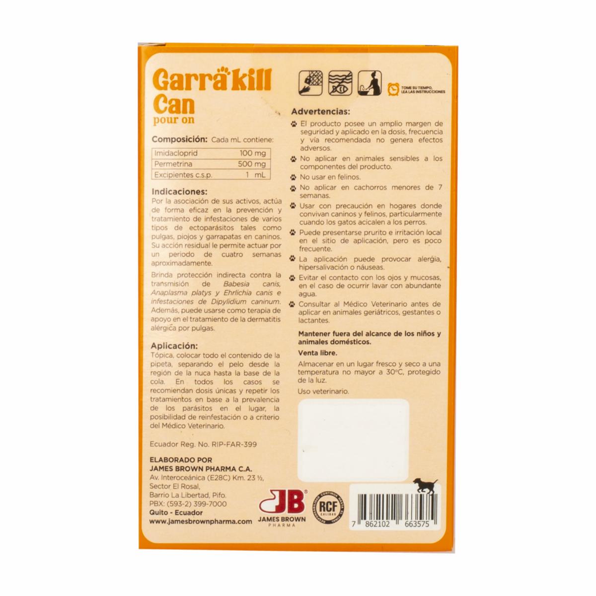 Pipeta Antiparasitario Para Perro De Hasta 5kg GARRA KILL CAN 0,5 Ml