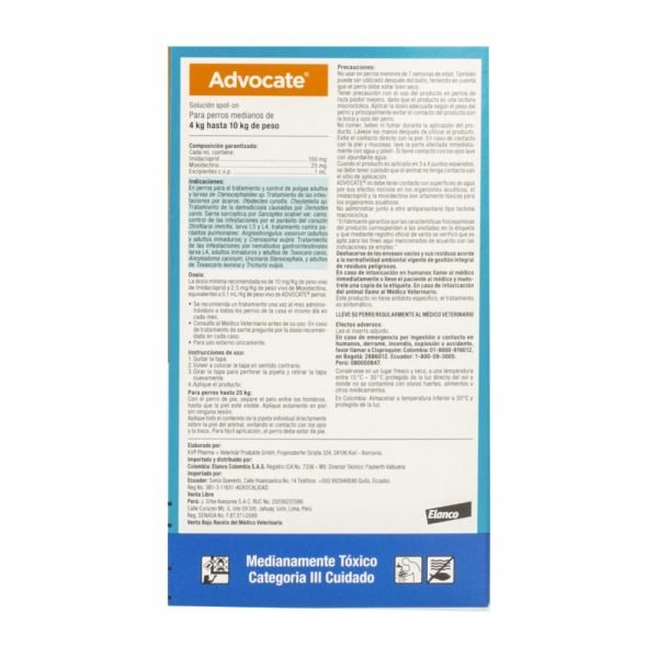 Pipeta Antiparasitario Para Perros De 4-10Kg ADVOCATE 1 ML