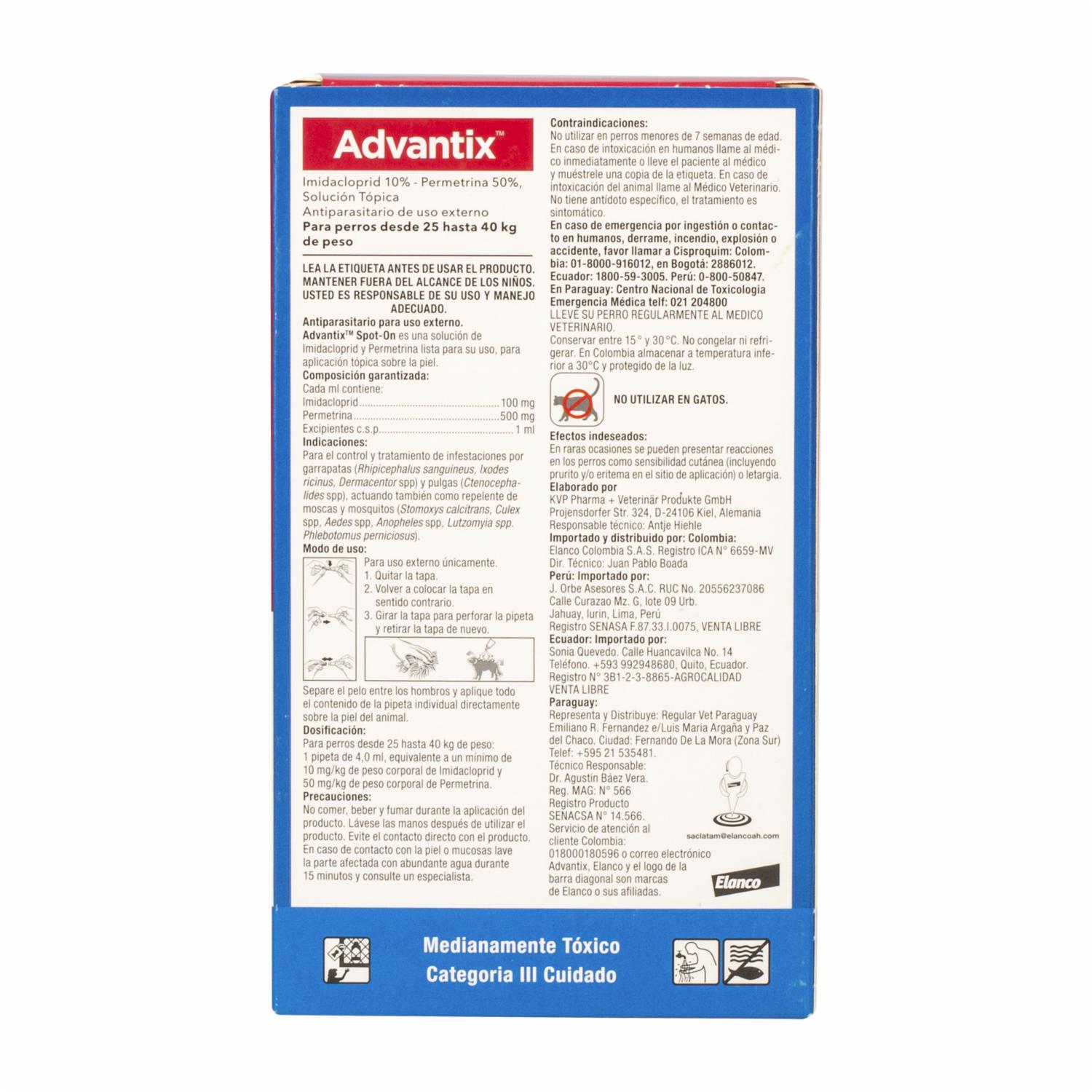 Pipeta Antiparasitario Para Perros De Mas De 25 Kg ADVANTIX 4 Ml