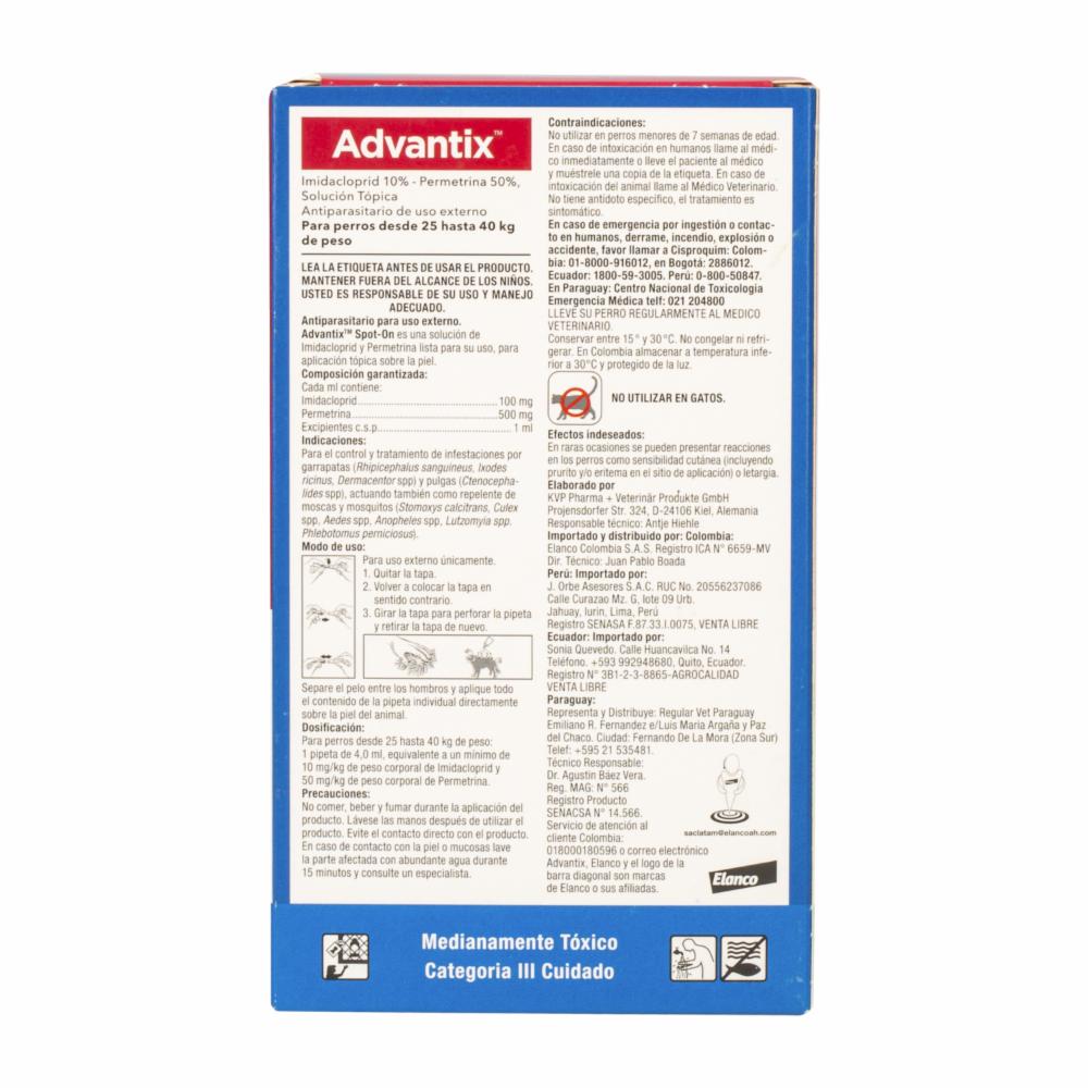 Pipeta Antiparasitario Para Perros De Mas De 25 Kg ADVANTIX 4 Ml – ADVANTIX. Disponible en nuestros locales. Precio y stock pueden variar según la tienda.