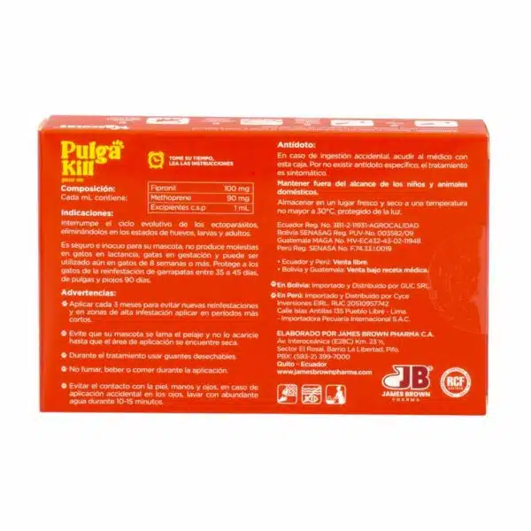 Pipeta Antipulgas Pour On Para Gatos PULGA KILL 0,5 Ml
