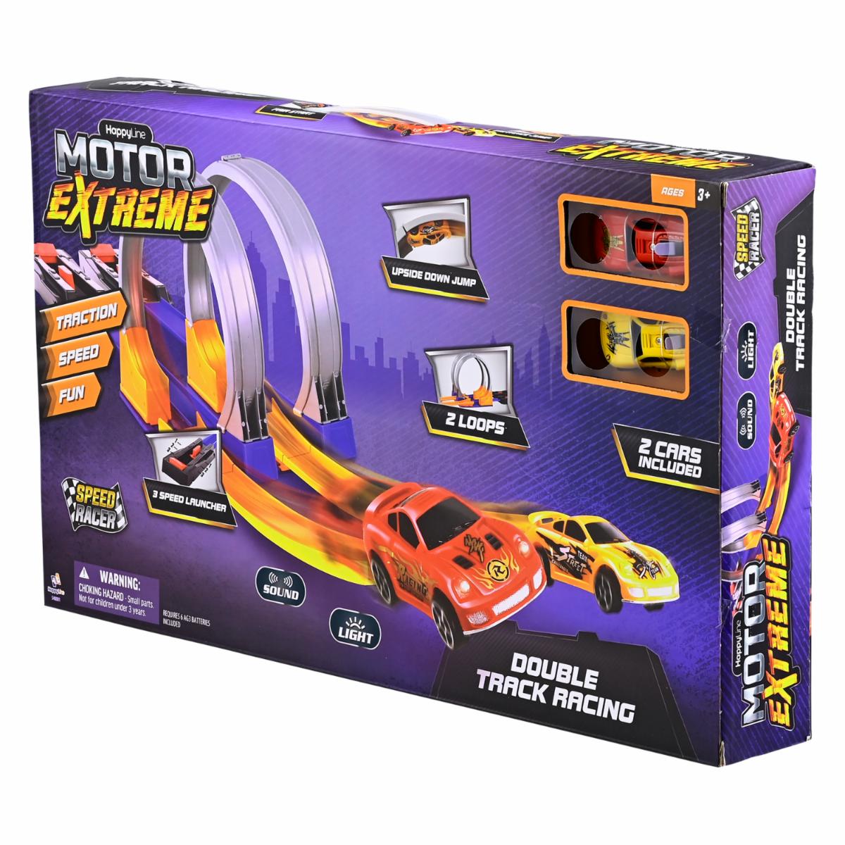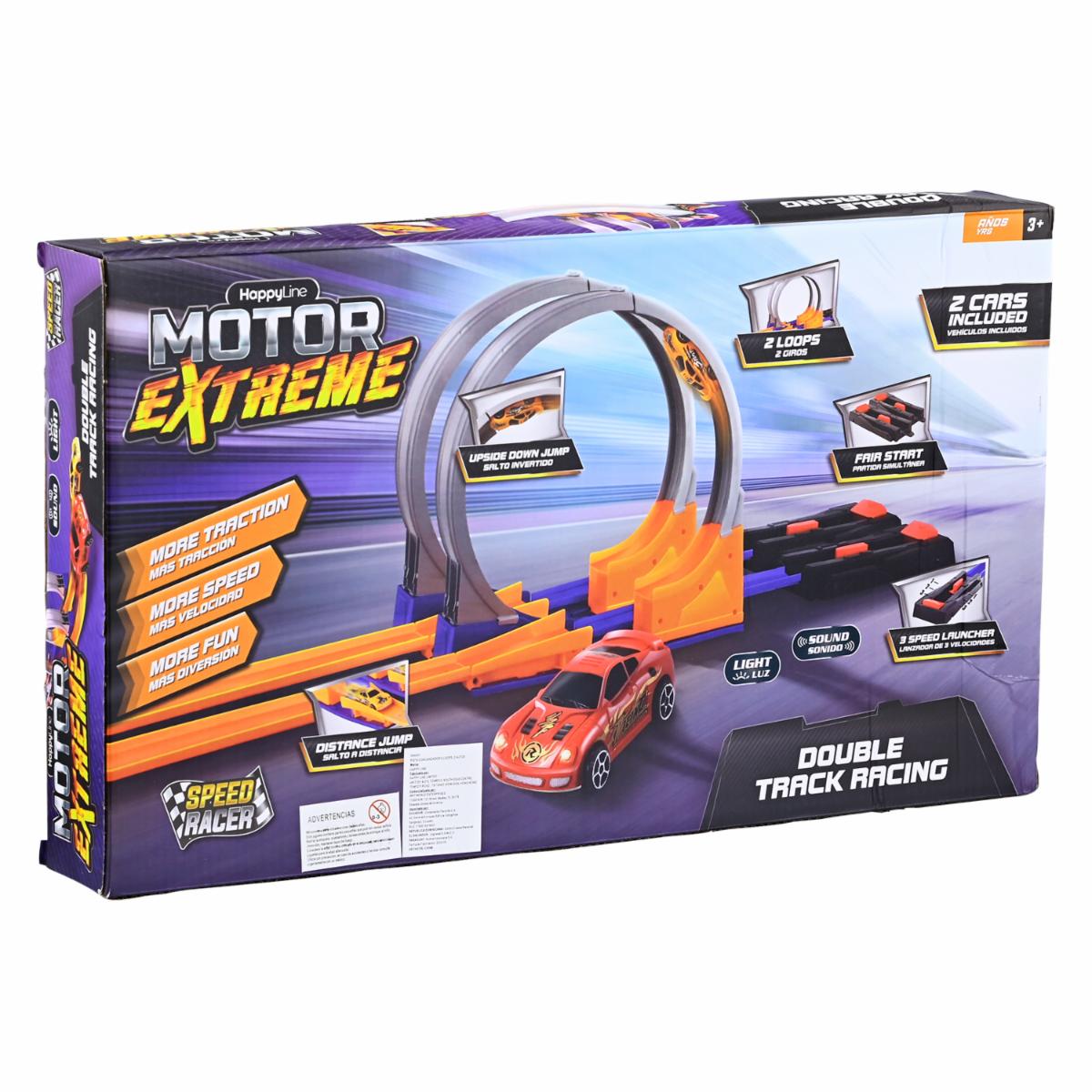 - ¿Estas listo para la diversión? Con la pista doble motor extreme tienes horas de juego sin límites. Esta increíble pista cuenta con lanzador, ve más allá y acepta el desafío con acrobacias de salto. Aprovecha su fácil almacenamiento, es fácil de armar y portable para llevar a donde quieras