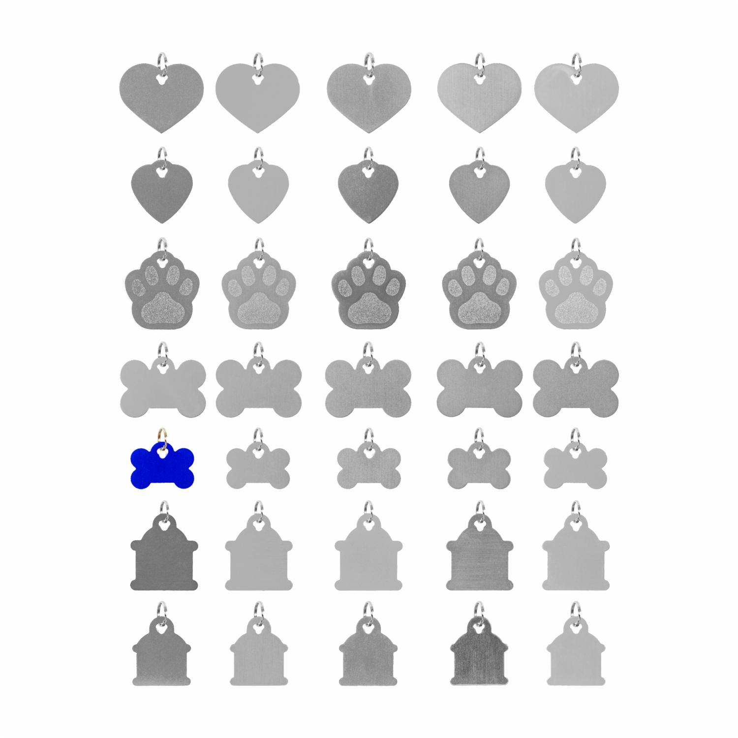 Placa Para Collar Metalica Con Forma De Hueso Color Azul DRAGON ENGRAVERS Unidad
