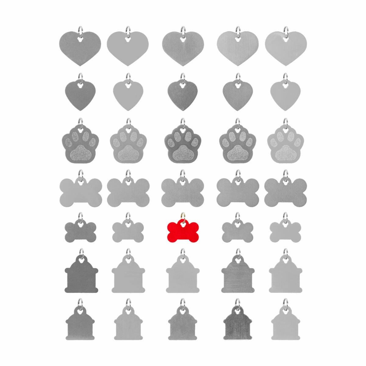 Placa Para Collar Metalica Con Forma De Hueso Color Rojo DRAGON ENGRAVERS Unidad
