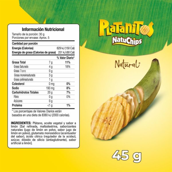 Experimenta el delicioso sabor de la naturaleza con los Platanitos Sabor Natural de NATUCHIPS. Estos crujientes platanitos están elaborados con ingredientes naturales y ofrecen un sabor auténtico que te transportará a los sabores frescos y tropicales de los plátanos maduros