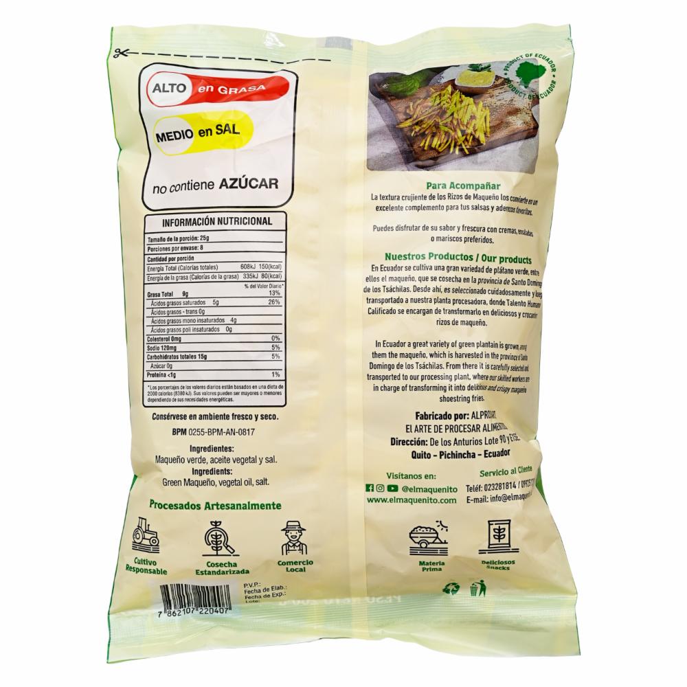 Plátano Verde Rizos EL MAQUEÑITO Funda – EL MAQUEÑITO. Disponible en nuestros locales. Precio y stock pueden variar según la tienda.