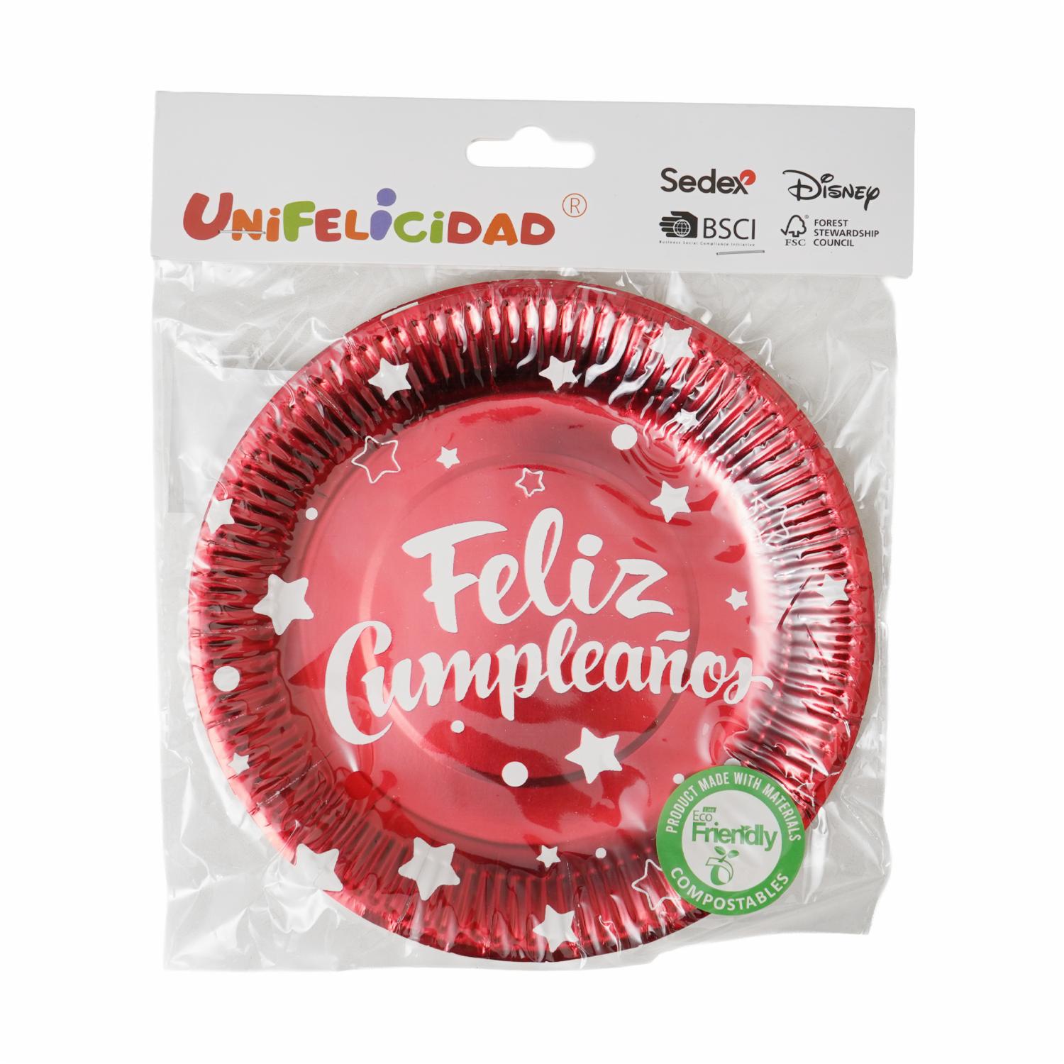 Plato Feliz Cumpleaños UNIFELICIDAD X 10 Uds