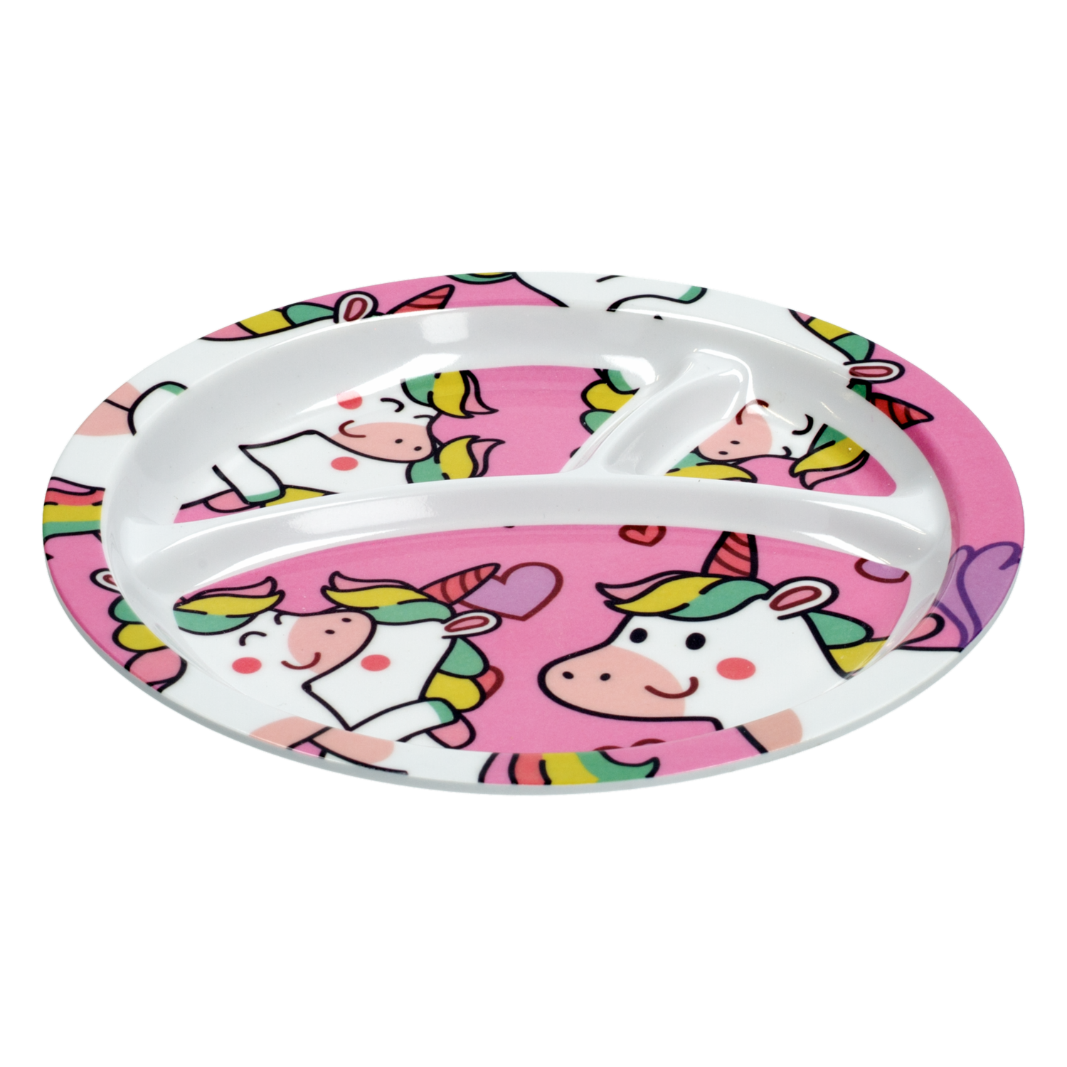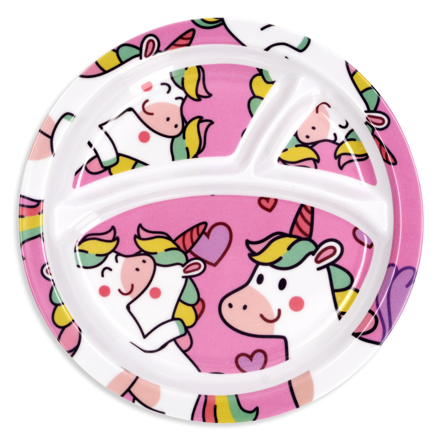 Plato Infantil Redondo Con Divisiones Diseño Unicornio VAJILLAS SABANA 21 Cm