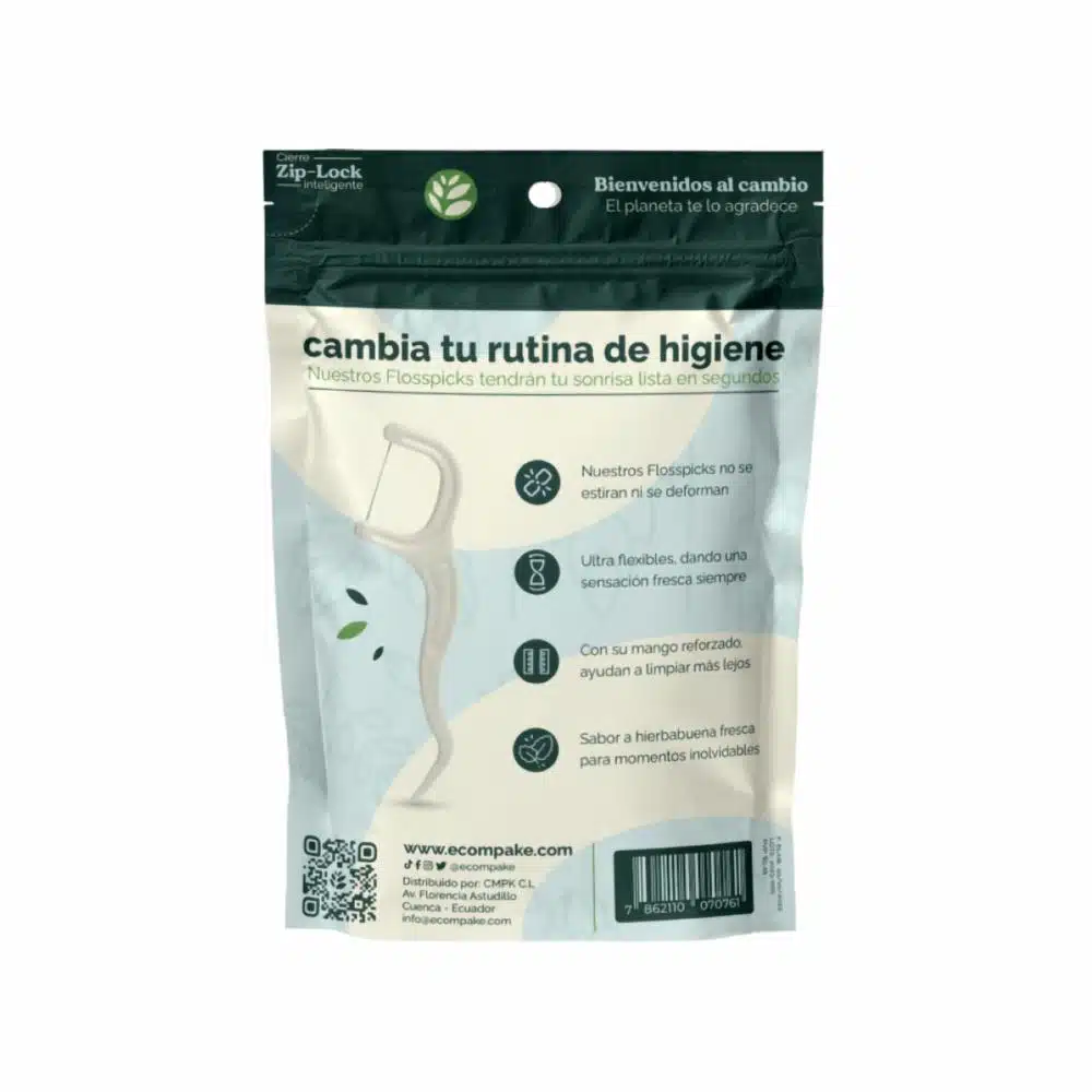Floss Picks ECOMPAKE ecológicos 100 % compostables y 100% biodegradables