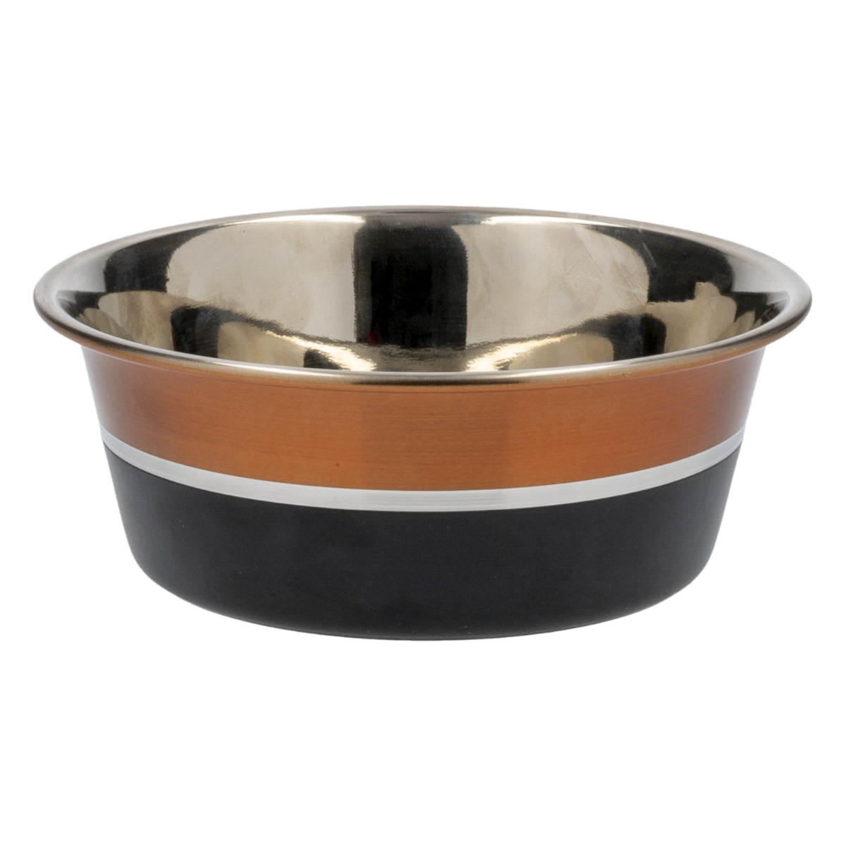 - Disfruta de un plato resistente y moderno que combina acabados en bronce y negro para darle un estilo único al espacio de tu mascota. Su base de silicón evita deslizamientos y hace que la hora de comer sea más cómoda y limpia. Ideal para mantener la estabilidad del alimento y facilitar la higiene diaria.