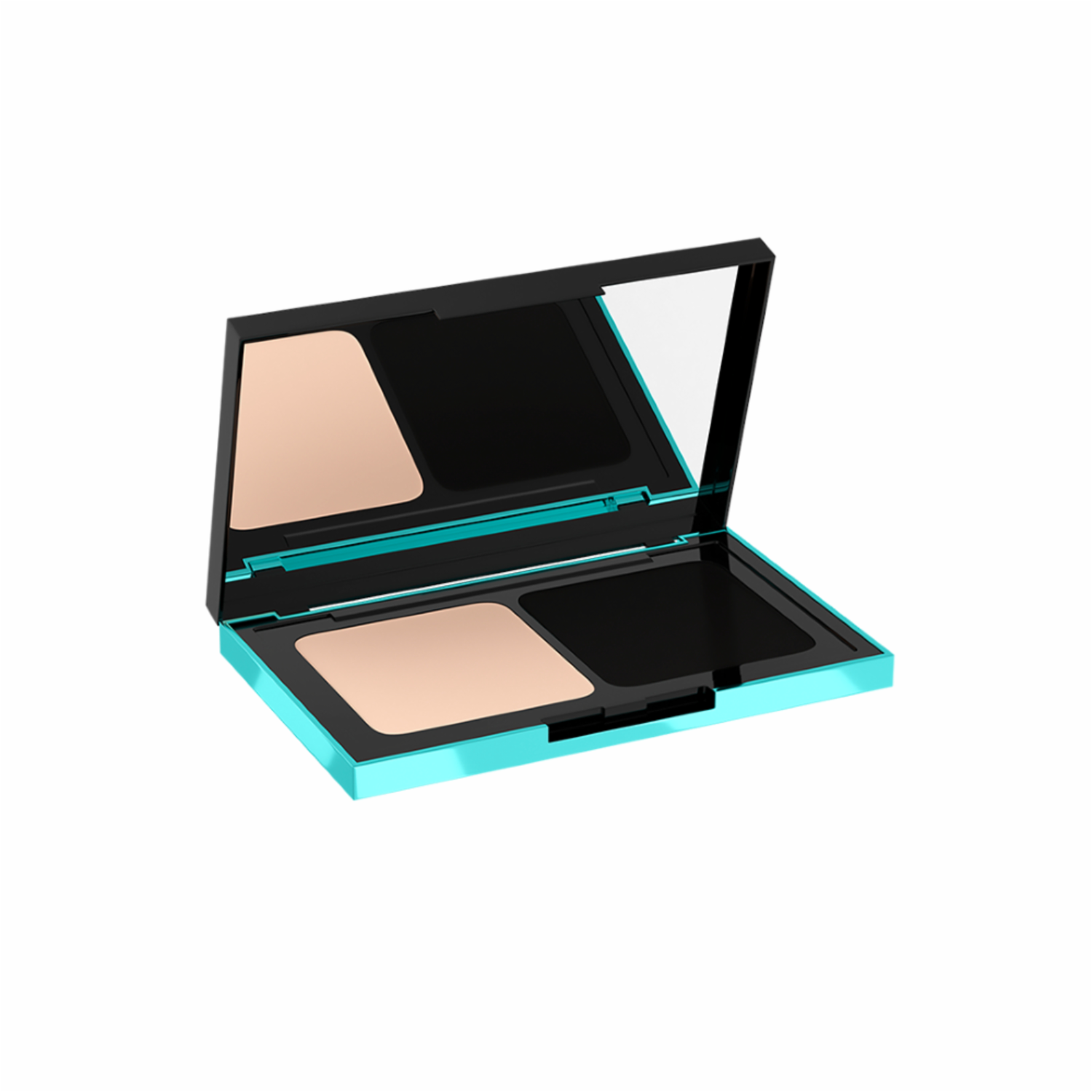 -Con el aplicador provisto, aplica el polvo con leves toquecitos en la frente, la nariz, las mejillas y el mentón y difumínalo con trazos suaves hacia abajo.