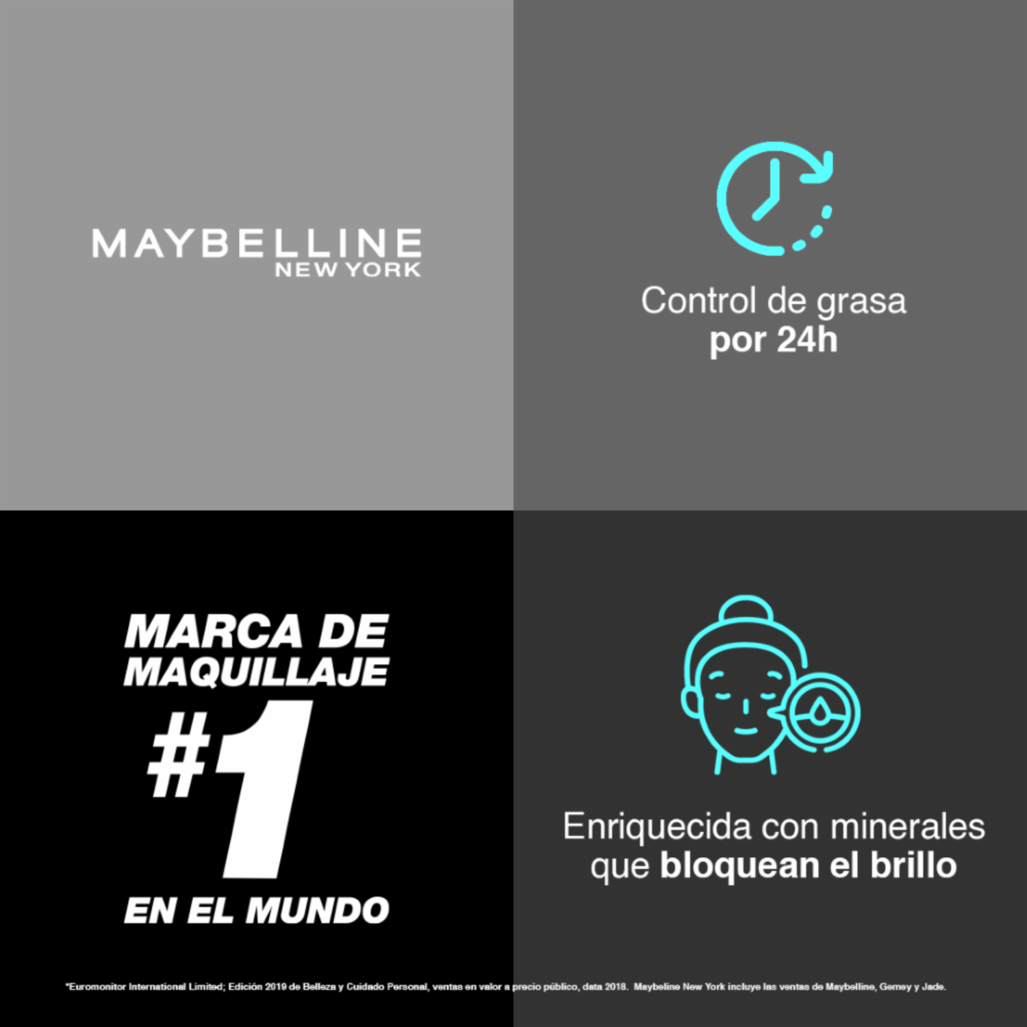 -La base de maquillaje en polvo Fit Me te da 24H de control de brillo y protege tu piel del sol gracias al FPS 44.
