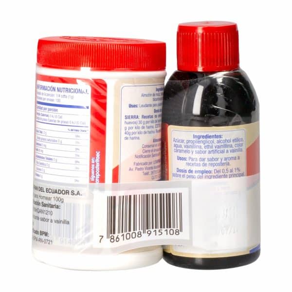Este innovador producto combina el poder leudante del polvo para hornear con el aroma exquisito de la esencia de vainilla, todo en un práctico envase de 200 gramos. Ideal para quienes buscan simplificar su proceso de repostería sin sacrificar sabor ni calidad