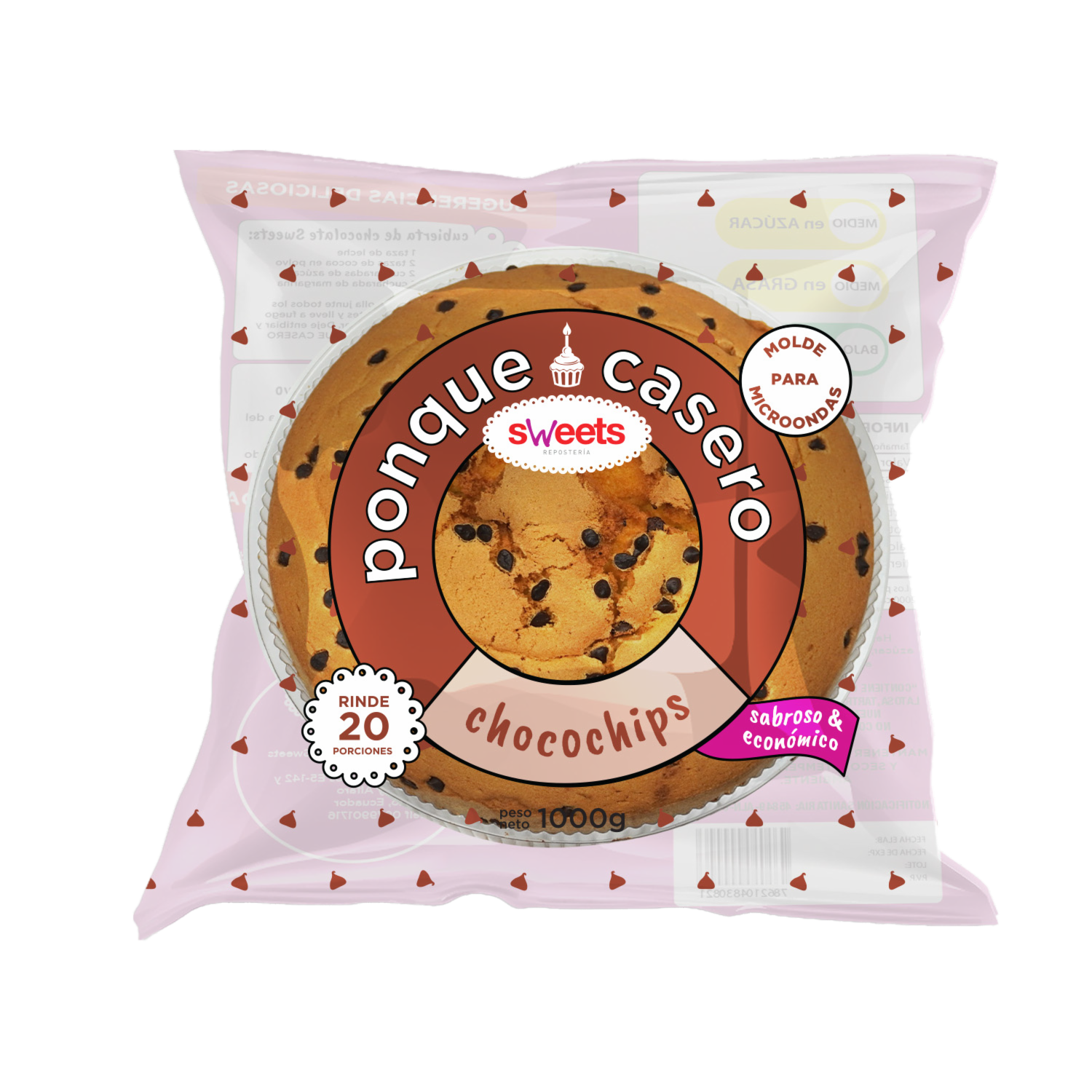 Ponqué Casero De Chocochips Grande SWEETS 1000 G – SWEETS. Disponible en nuestros locales. Precio y stock pueden variar según la tienda.