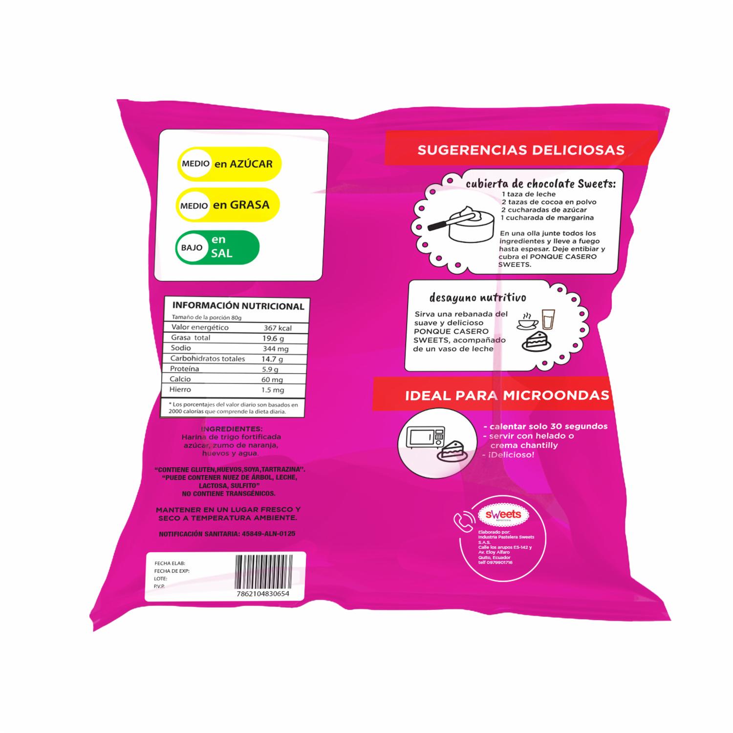 Ponqué Casero De Naranja Grande SWEETS 1000 G