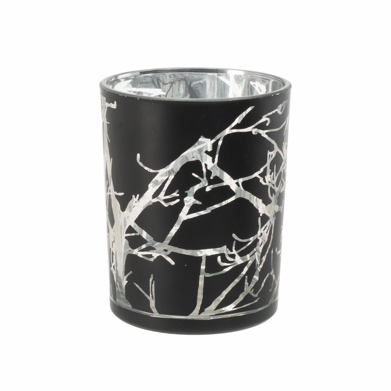 Porta Velas Decorativa De Vidrio Negro Con Blanco JOY 12.5 Cm