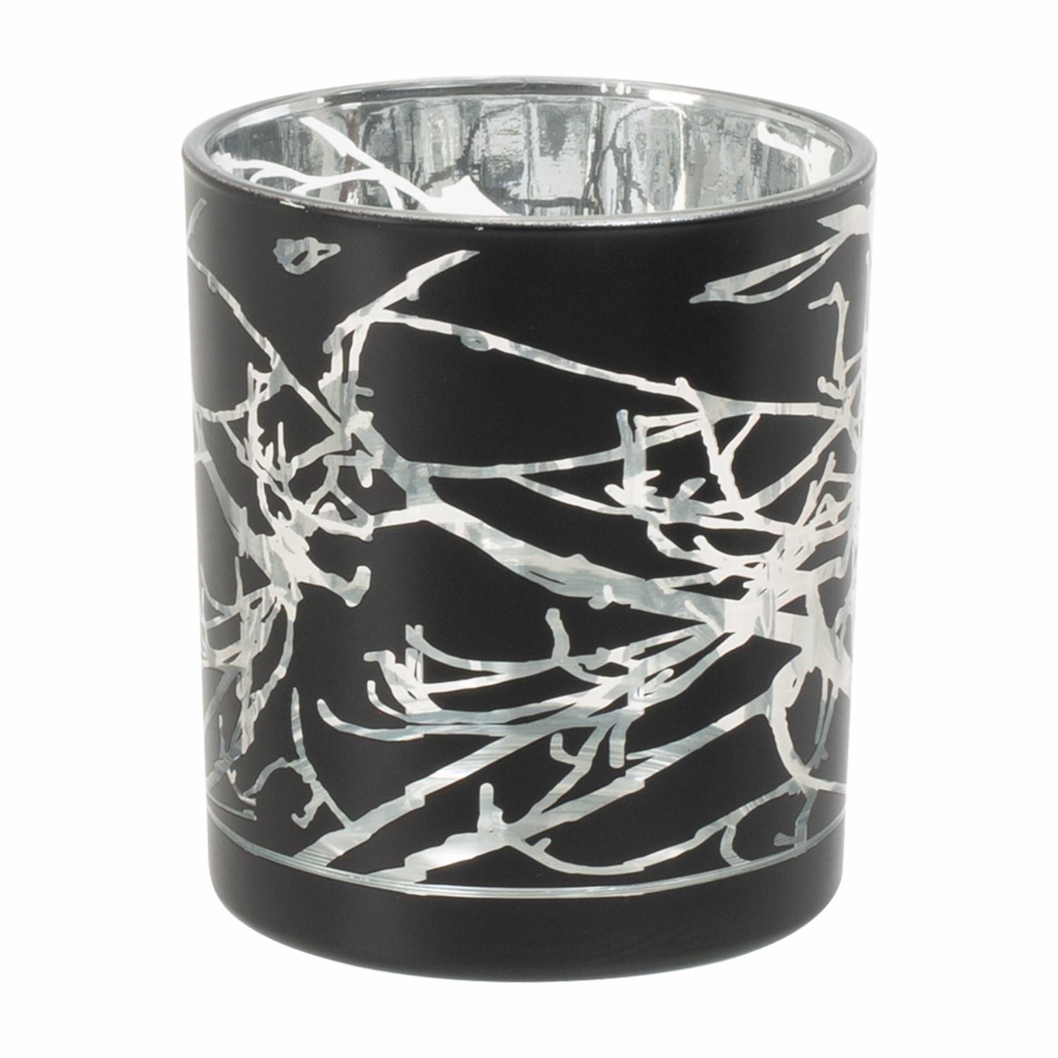 Porta Velas Decorativa De Vidrio Negro Con Blanco JOY 9 Cm