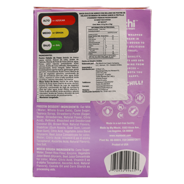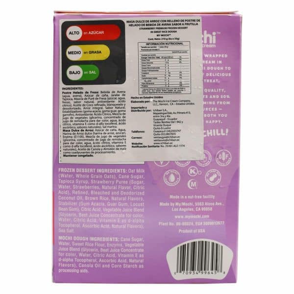 Helado vegano de fresa elaborado con bebida de avena y recubierto con masa de arroz. Producto libre de lactosa, gluten, soya y nueces de árbol. No contiene jarabes de maíz altos en fructosa. Es apto para veganos y cuenta con certificación kosher y halal