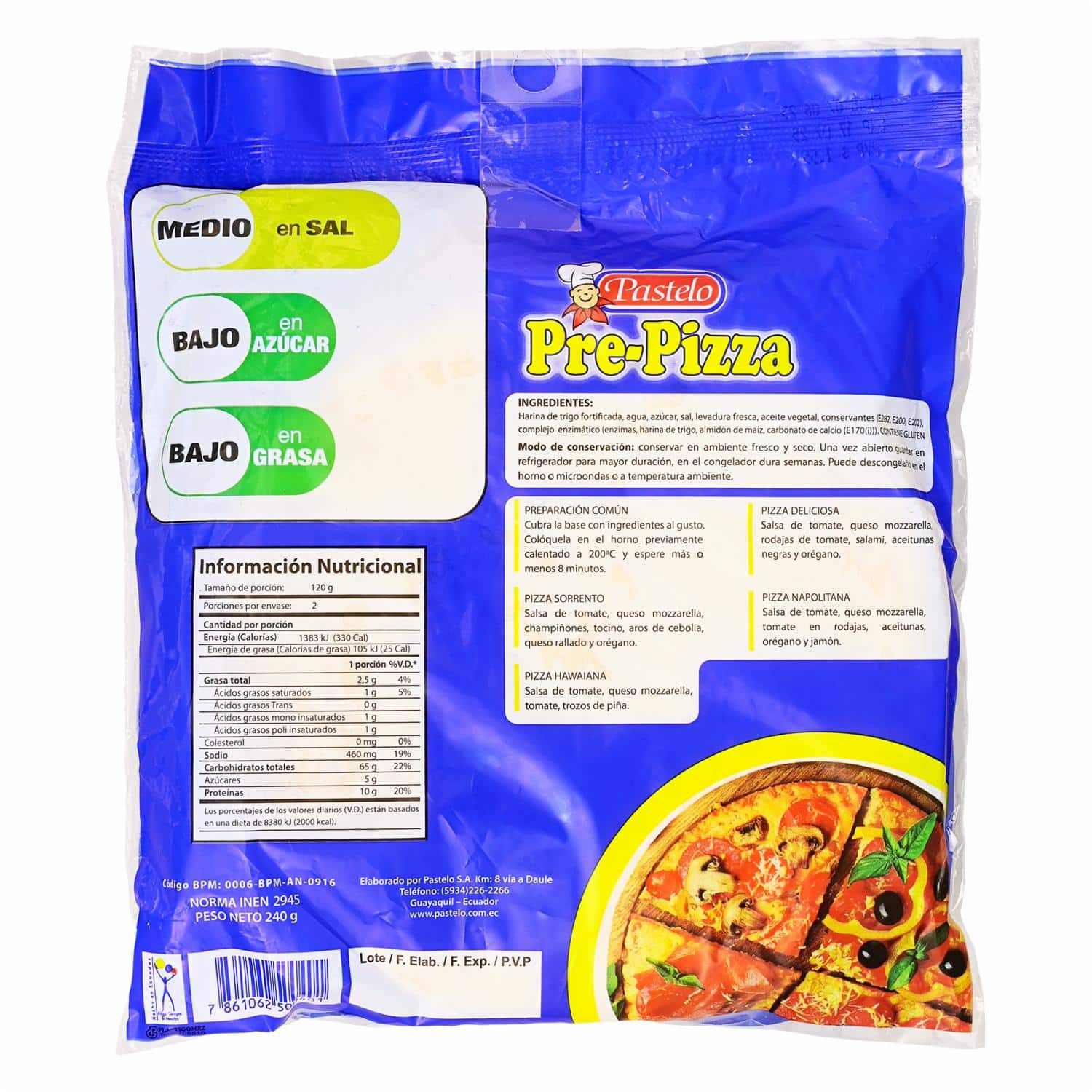 Pre-Pizza Masa PASTELO 240g – PASTELO. Disponible en nuestros locales. Precio y stock pueden variar según la tienda.