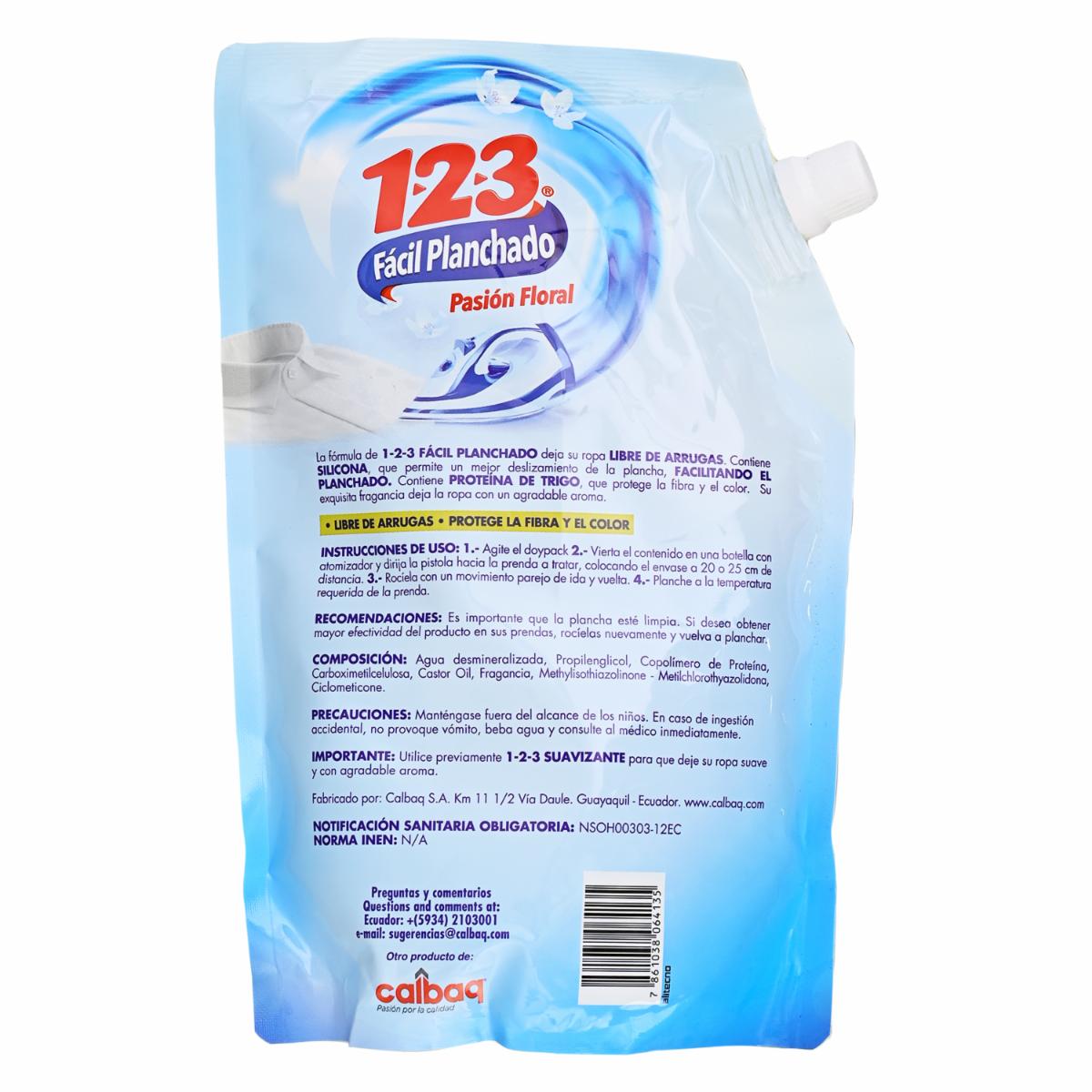 Pre Planchado Doypack Pasión Floral 1.2.3 600 Ml – 1-2-3. Disponible en nuestros locales. Precio y stock pueden variar según la tienda.